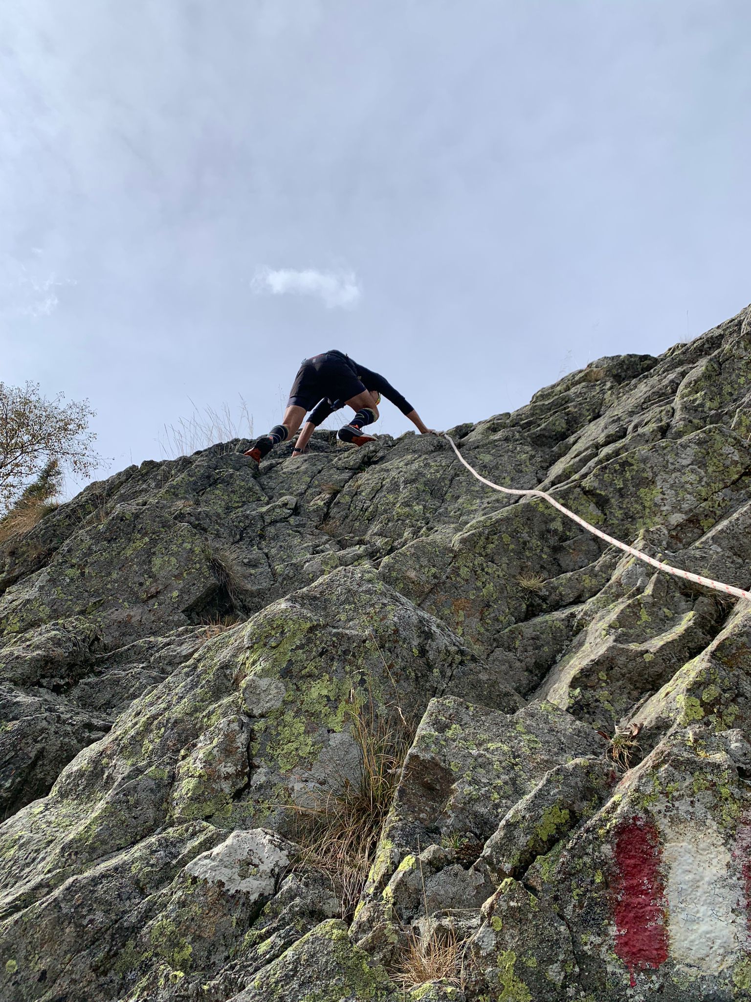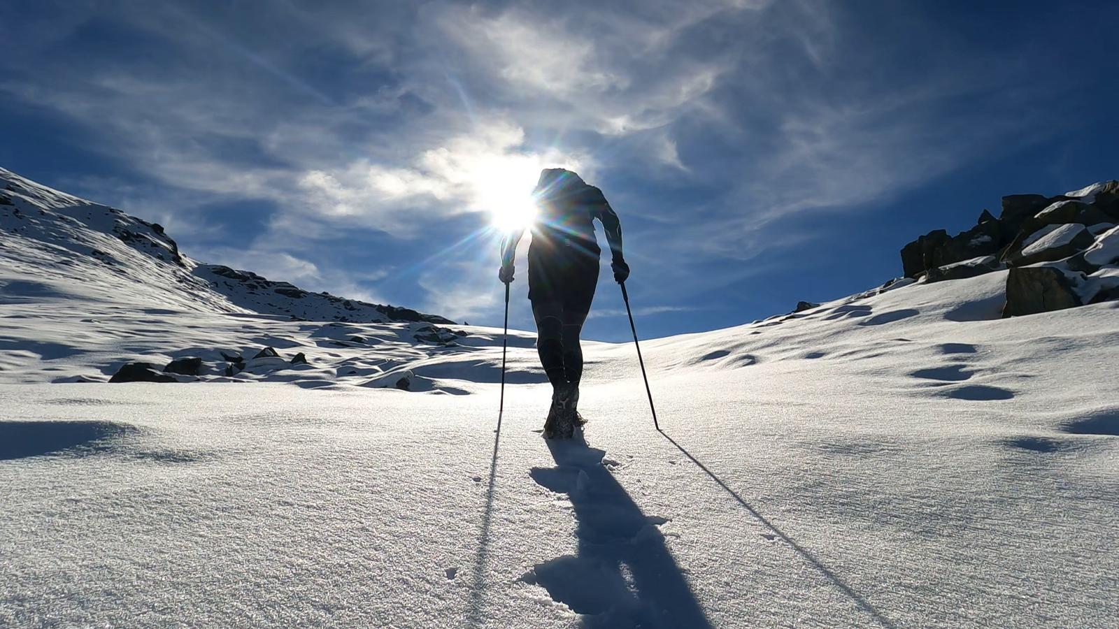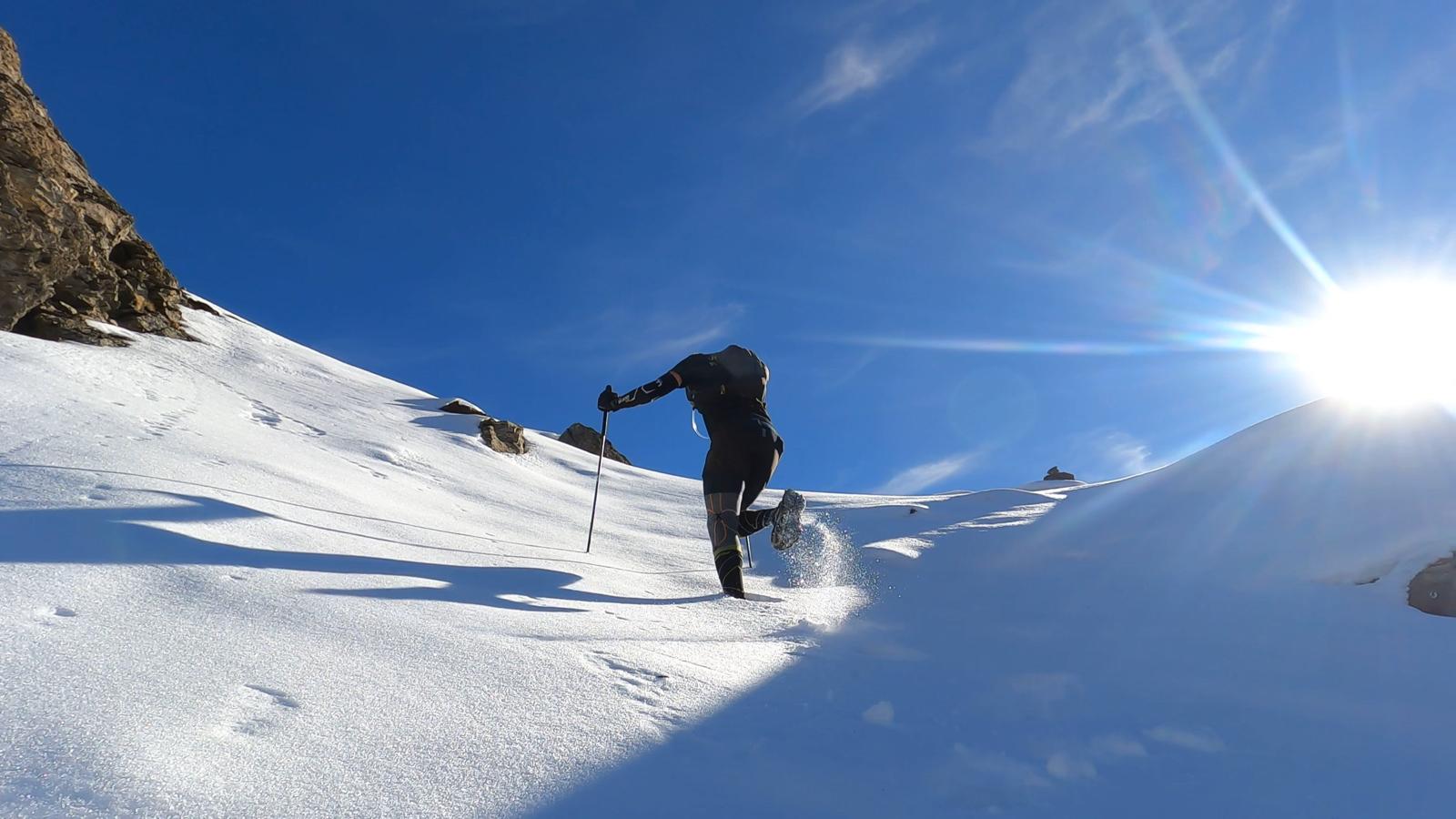 Gran freddo al mattino, ma poi in questa splendida giornata di novembre il sole ha cambiato tutto. Neve fino al colle des acles, i ramponicini…