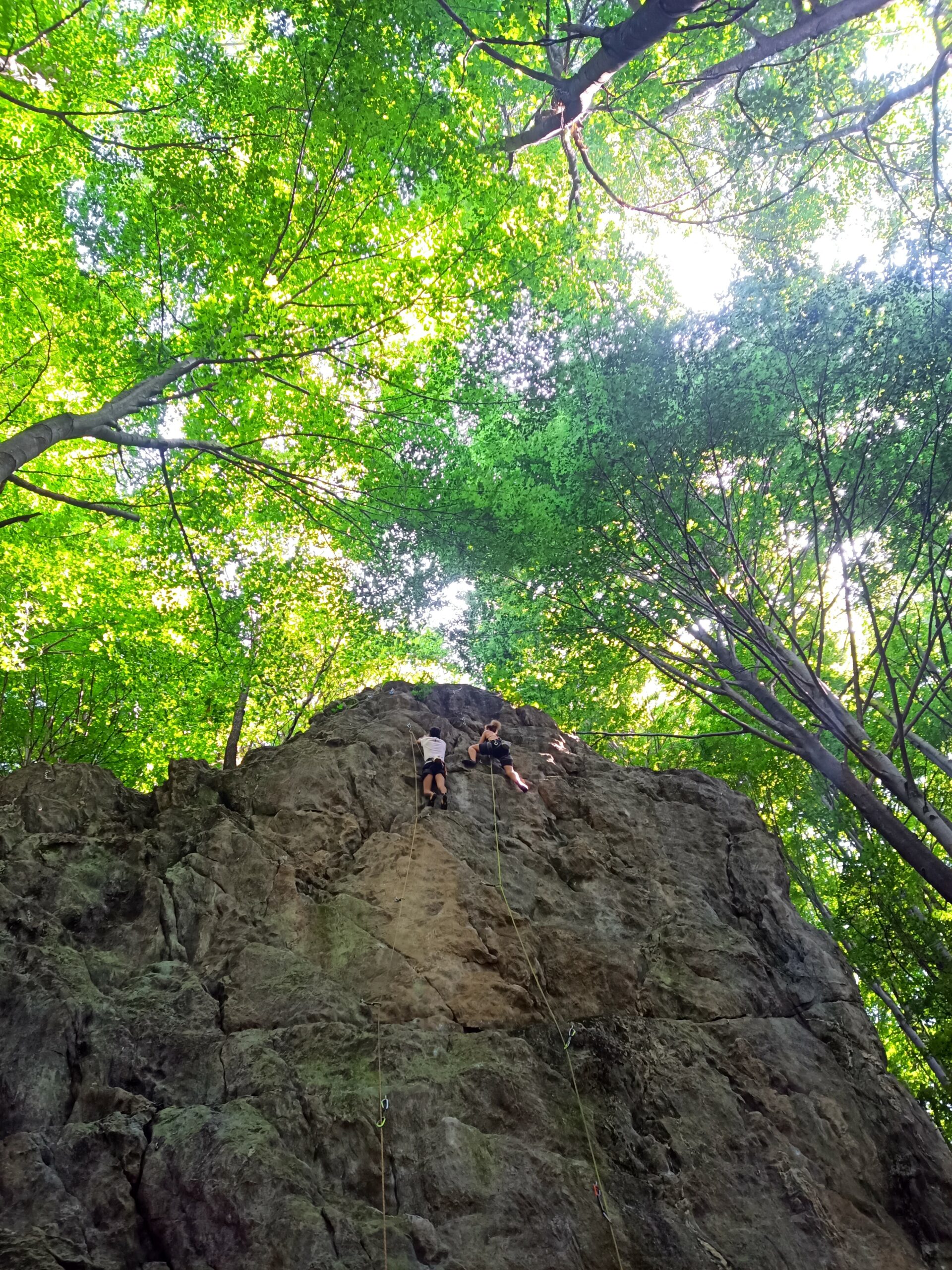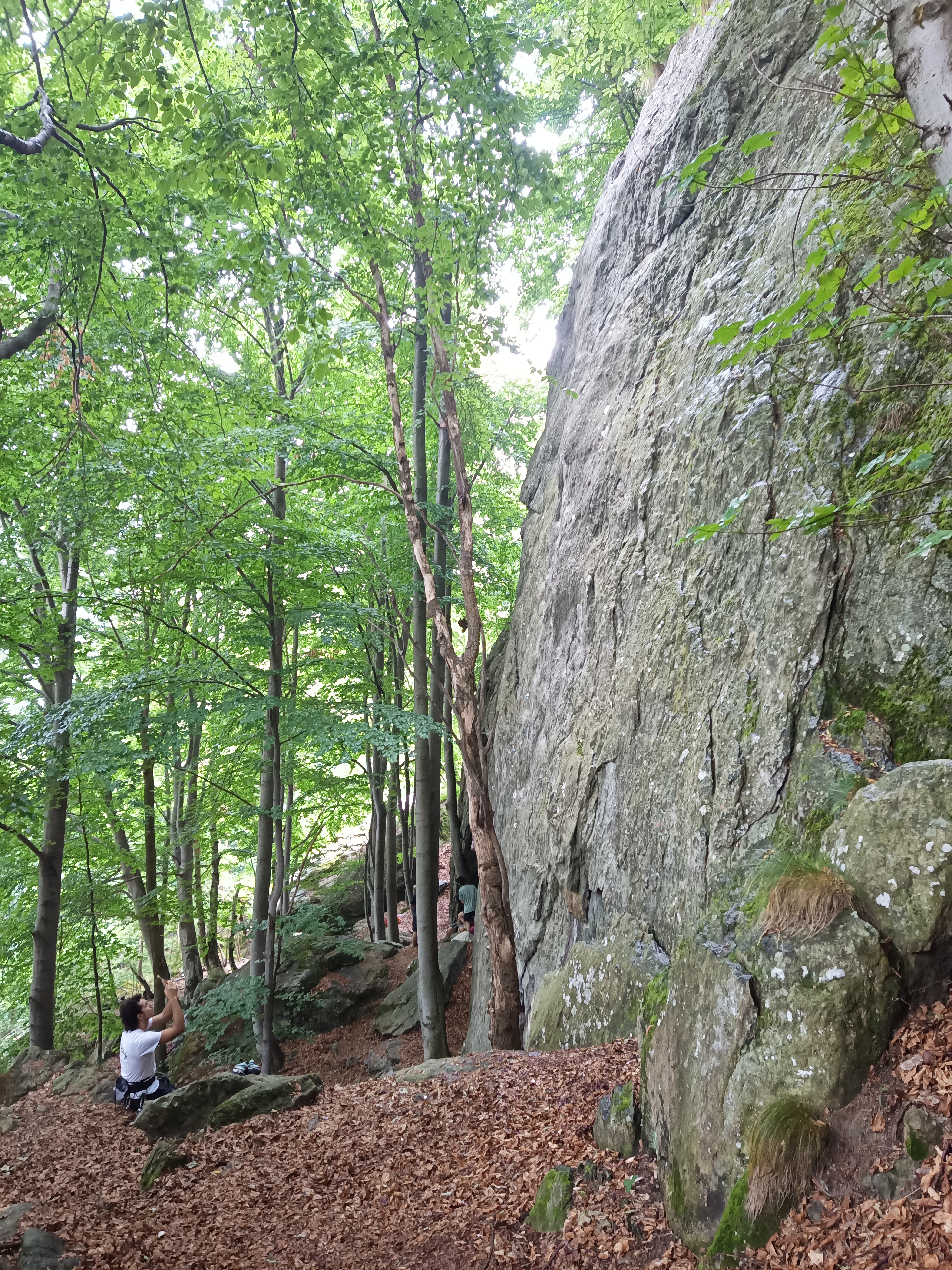 Masso gigante calato dal nulla tra il bosco e il prato. Impressionante. Come impressionante il lavoro di chiodatura che è andato a valorizzare ogni metro…