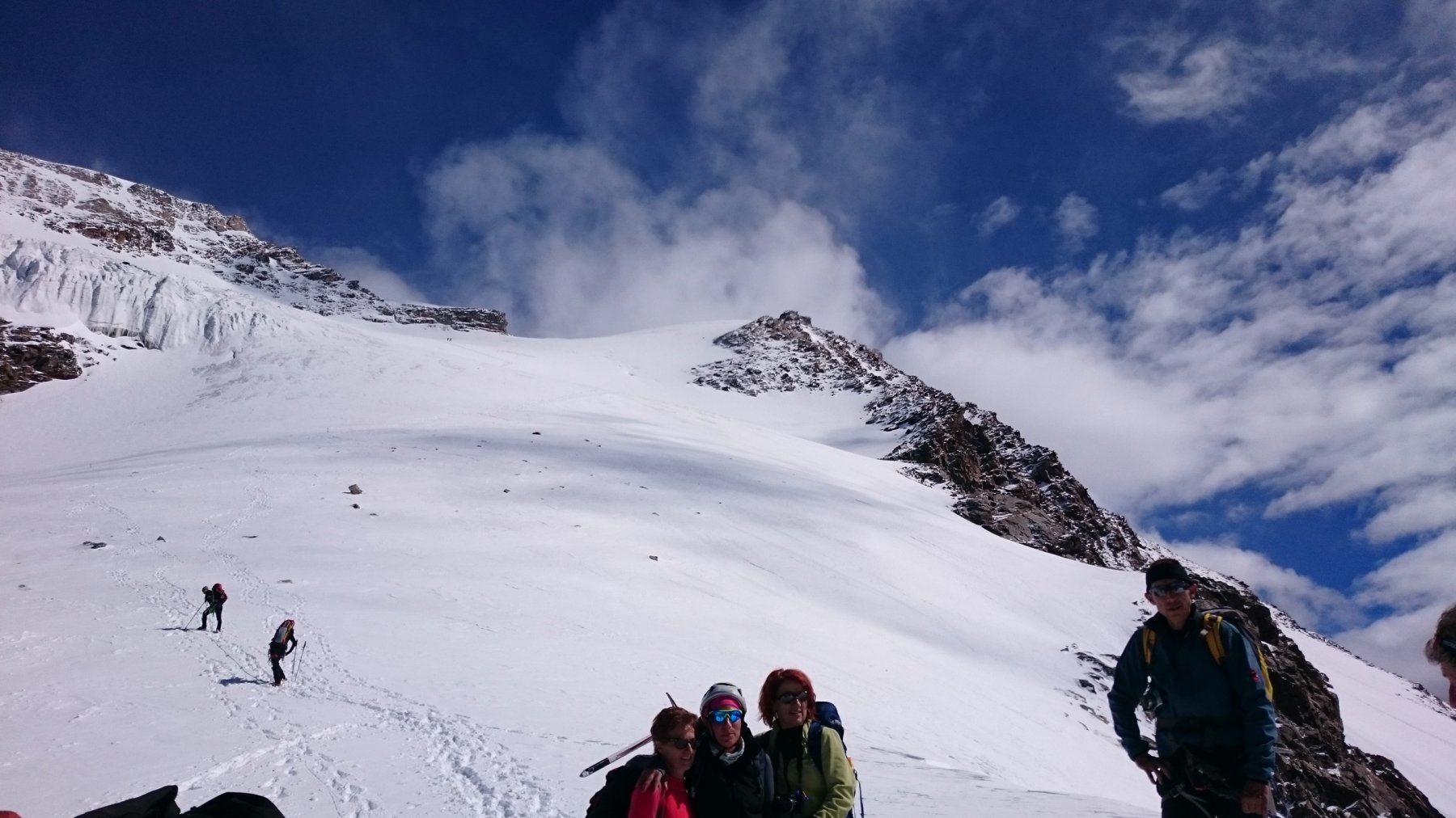 Ancora molta neve a partire dal tratto dopo le prime corde fisse. Ghiacciaio inizia a scoprirsi in alcuni punti.
