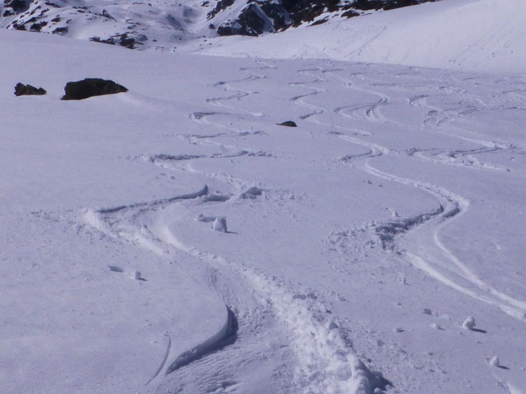 | palomba | Baite di Chatzhalte | palomba | La cima vista da Furggu | palomba | Il pendio sotto la cima | palomba | Il laghetto | palomba | Lama molto curiosi | palomba | traccia di salita (certo non tipica per fine aprile a queste quote) | palomba | Cornici in vetta | palomba | Serpentine sotto il colletto | palomba | Finalmente al sole | palomba | Wow | palomba | Il traverso ancora con neve sufficiente | palomba | A sinistra del canalino dopo il lago | palomba | Le ultime serpentine godibilissime anche nella parte bassa