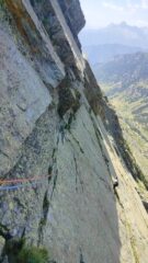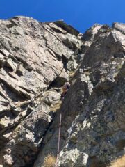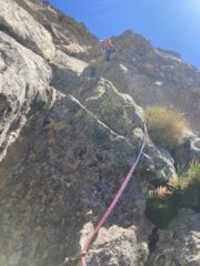 Via dal sapore alpinistico in un super ambiente! Solo noi oggi scalare sul triangolo! Superato lo zoccolo iniziale in due tiri! Chiodatura distanziata ma giusta, il…