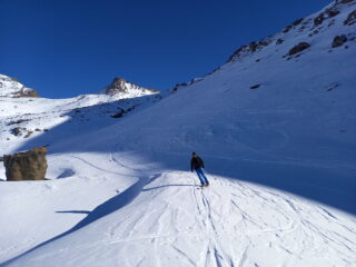 Tenendo conto della stagione la gita è in condizioni abbastanza buone. Si mettono gli sci al ponte sotto il Benevolo e si arriva fino…
