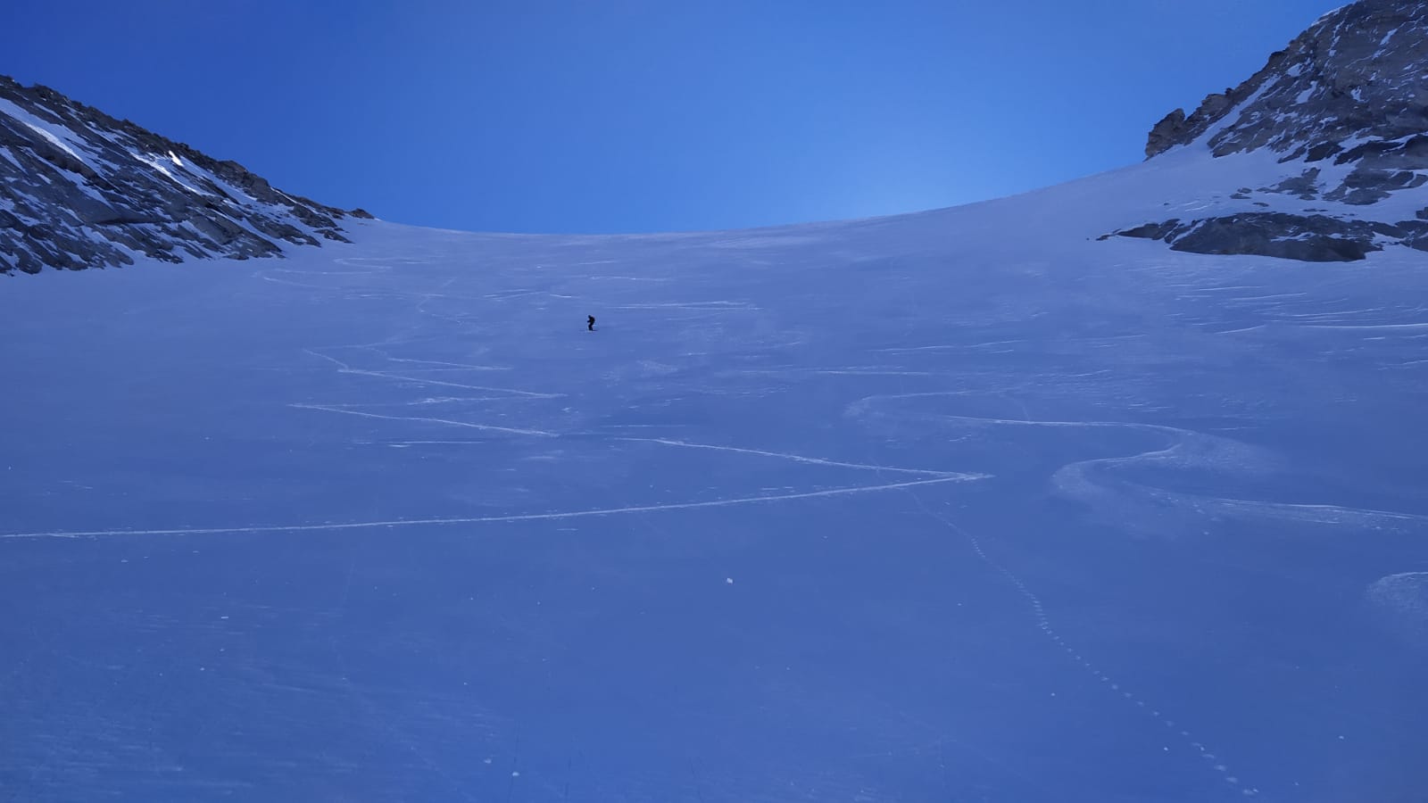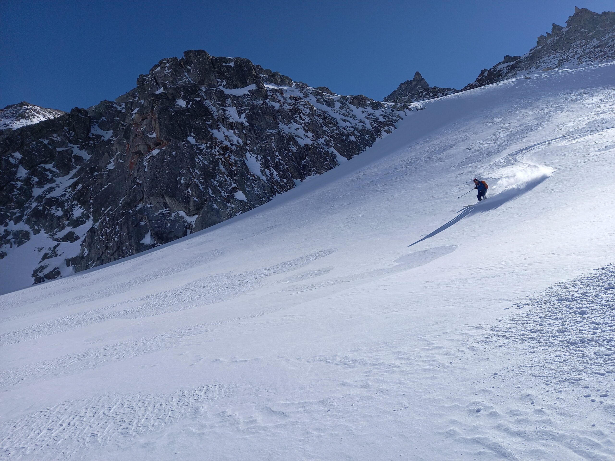 Ottime condizioni sulla Rabuigne: la maggior parte della discesa si svolge su bella farina..solo ogni tanto qualche tratto di ventata e un po di crosta…