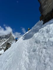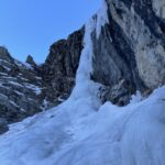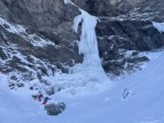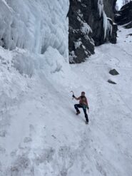 Ancora in buone condizioni, giornata calda sempre sopra zero. Cola acqua per il primo terzo della salita. E’ fatto anche il secondo tiro.