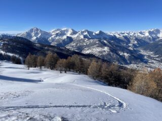 Si sale da Sauze sulla stradina per il capricorno senza pietre grazie alla recente nevicata. Poi in punta vento e tutto pelato, dopo i primi…