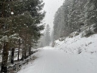Condizioni climatiche pessime con neve bagnata tranne nei 200 m superiori. Sentiero nel bosco ben innavato per salire, discesa possibile solo dalla strada, con una…