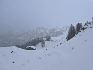 Partito da Fenile neve continua sulla stradina. Tutto sotto una nevicata, da sopra la diga visibilità pessima fino ad essere zero sulla cresta finale. In…