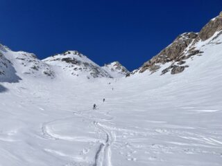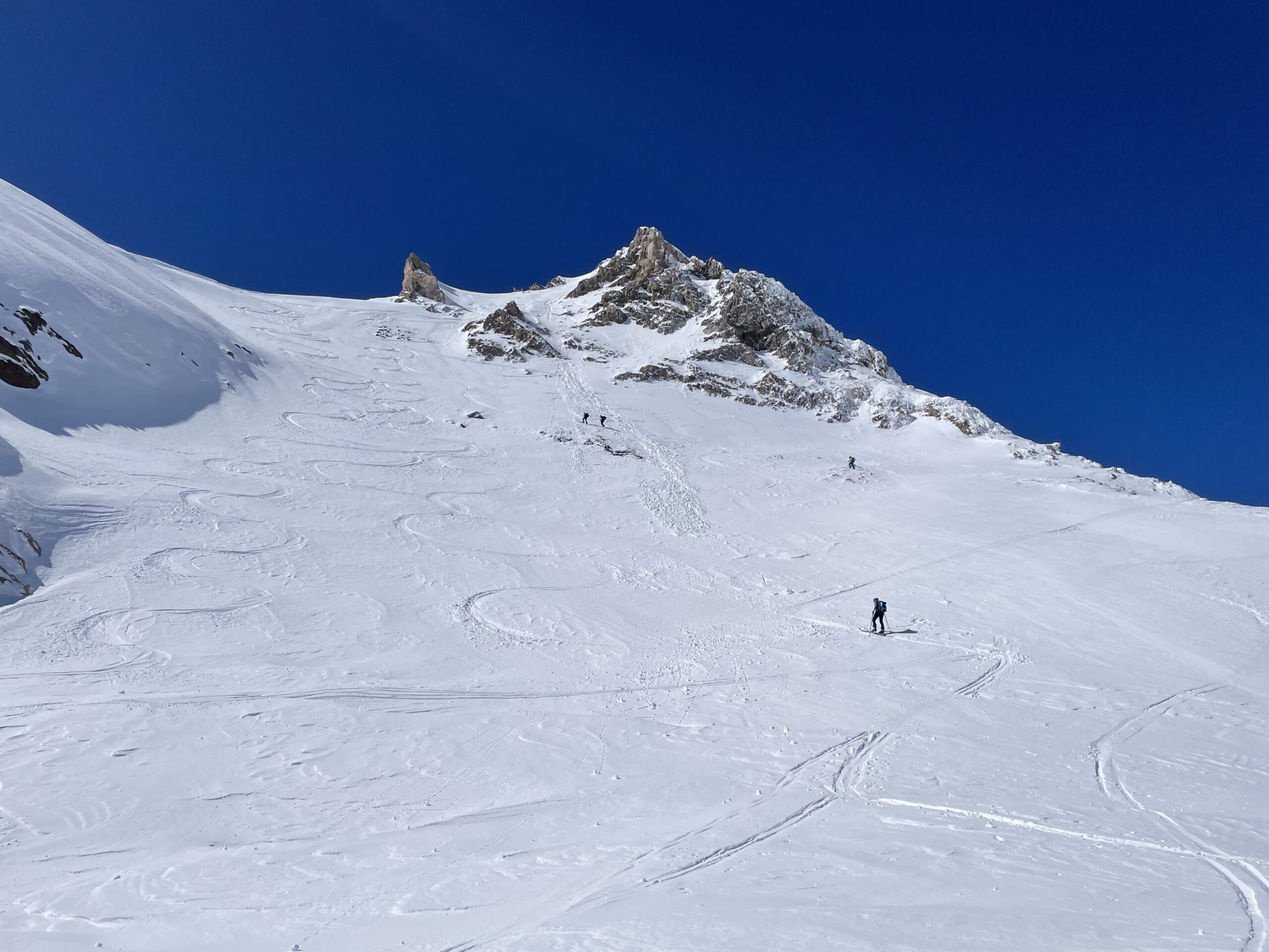 15 min portage dallo Scarfiotti. Ottimo innevamento, ma scendendo alle 11 aveva già mollato specie in alto, la parte centrale è in assoluto la migliore…