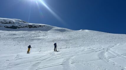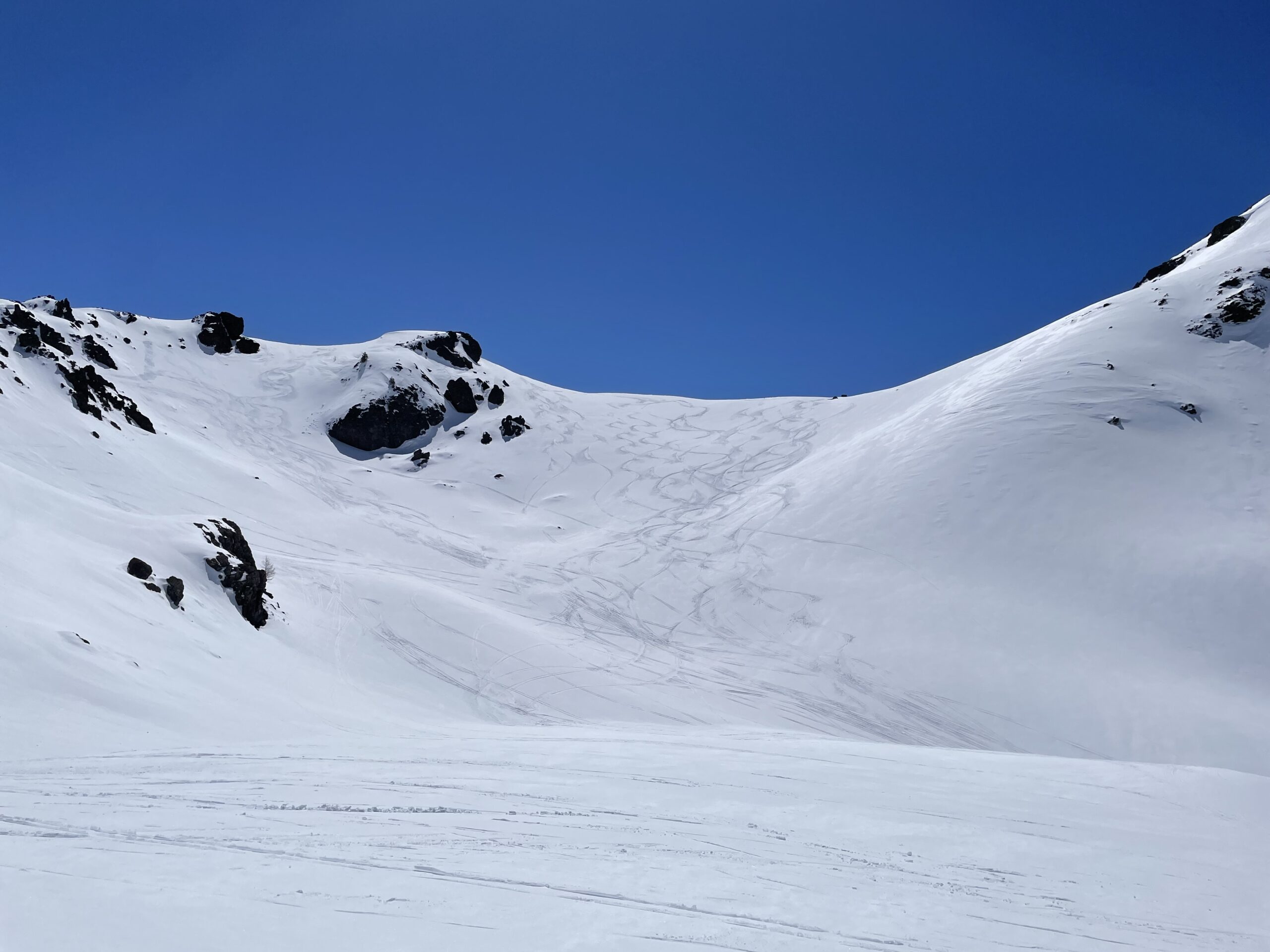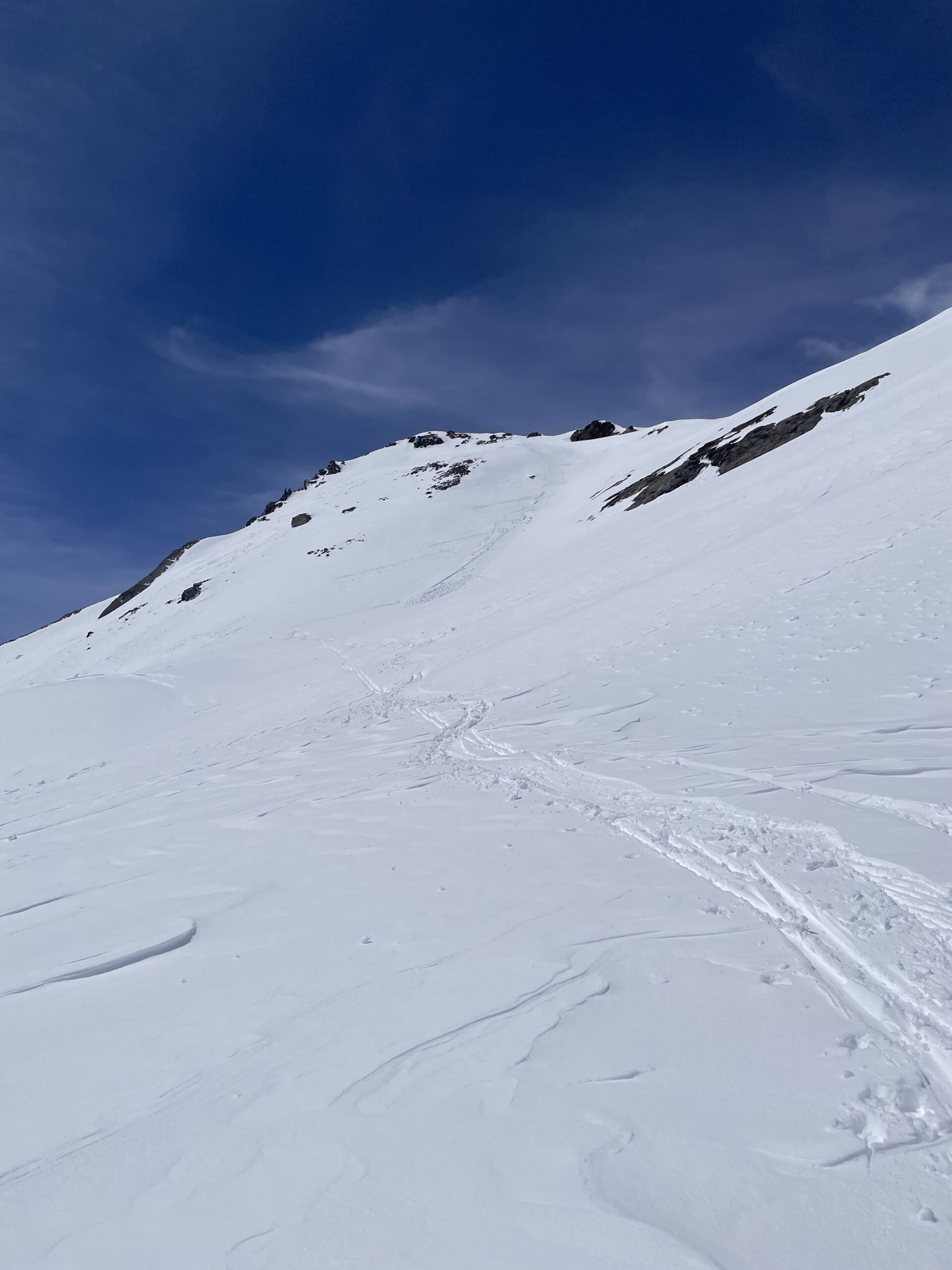 Giornata non fredda ma buon rigelo e scendendo la neve aveva tenuto bene. Prima qualche avanzo di farina pressata in punta poi duro e firn.…
