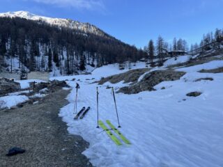 Si arriva in auto a circa 10 min dal parcheggio prima del ponticello che porta Grange della Valle, poi si mettono gli sci e si…