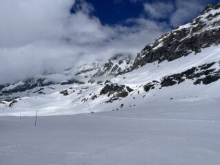 Meteo inclemente con poca visibilità e a tratti nevischio in alto. Neve bella in alto e in basso dopo Chabod, il resto è crosta non…