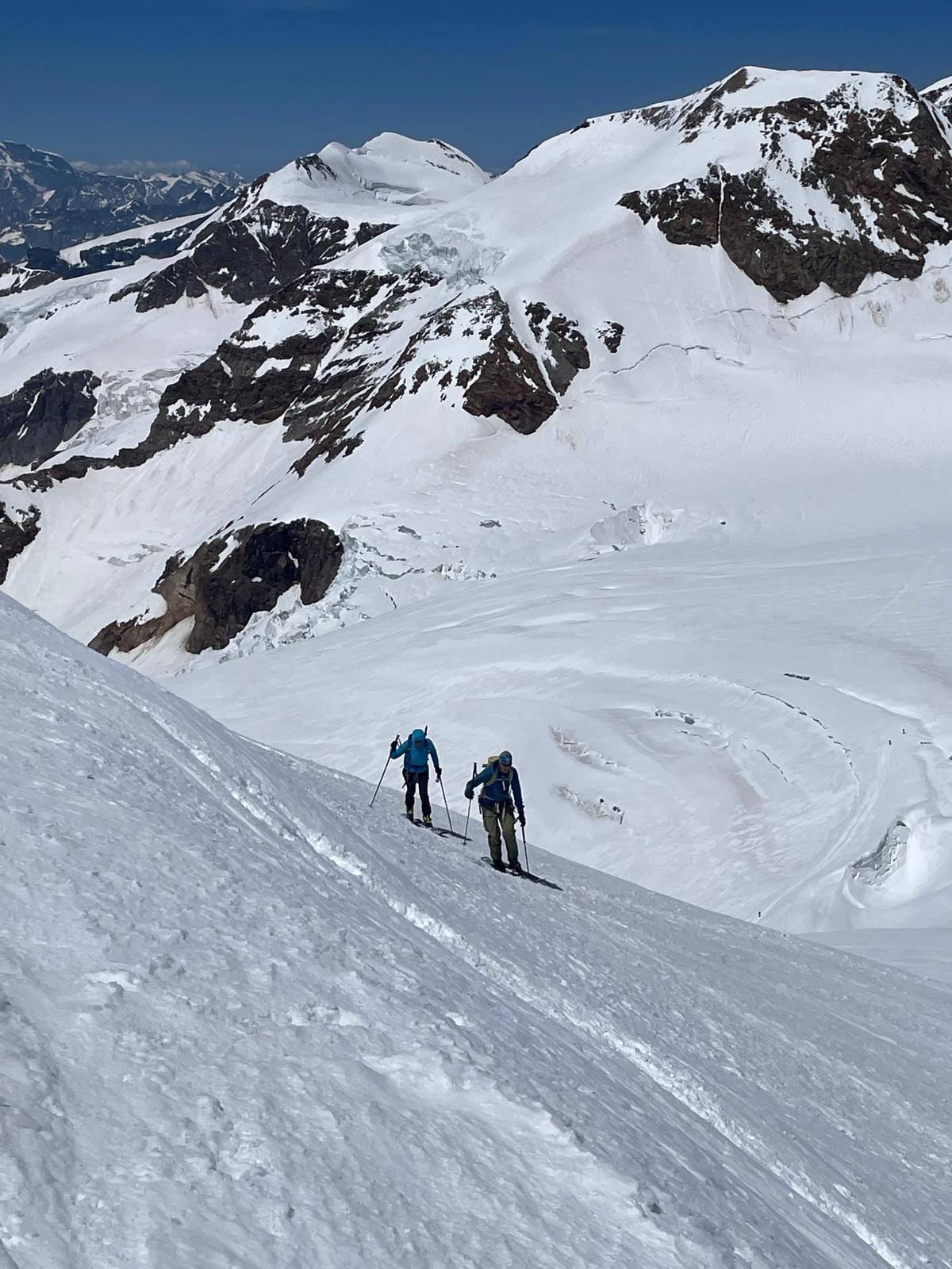 Crepacci tutti chiusi, ottimo rigelo. 2-3 dita di polvere recente sopra neve durissima quasi fino al Mantova alle 12. Vento patagonico che ci ha fermati a…