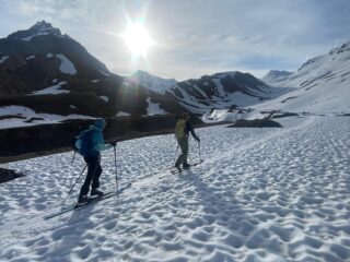 15 min portage poi si sale subito a sx, ancora tanta neve, però ha nevicato di recente e nei primi 500 m di discesa non…
