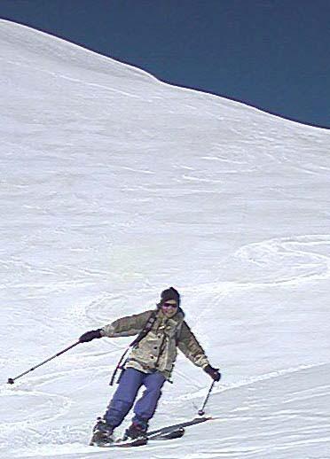 Bellissima neve scendendo dritti in direzione lago dalla punta, sotto molto brutta sia per i molti passaggi di sci che per la qualità della neve