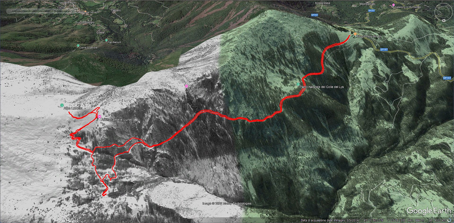 Gita al solo Col Lunella confidando sulla tenuta della copiosa nevicata di fine febbraio. Invece neve molto ridotta sul percorso, ciaspole indicate solo nell' ultimo…