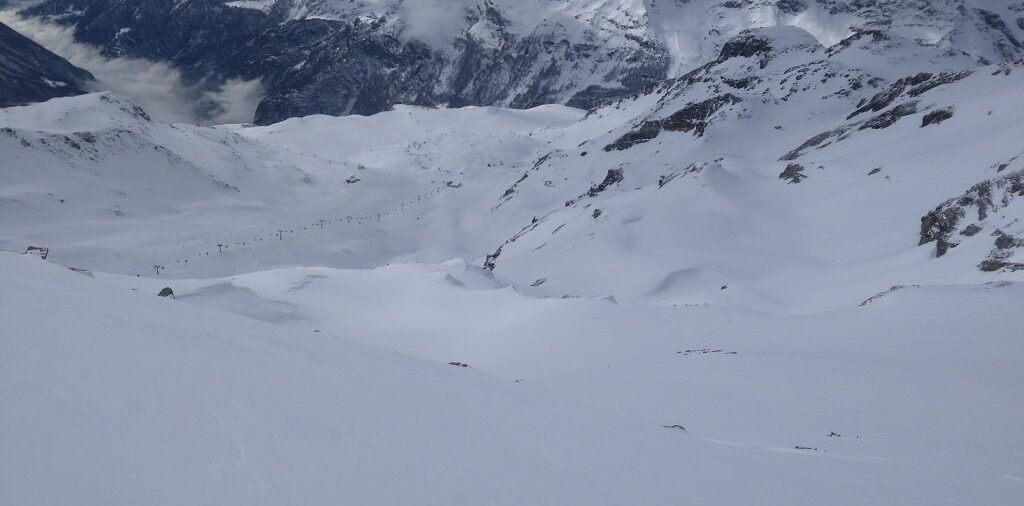 Nella prima parte del vallone incontrato vari freerider in discesa dalla seggiovia Bec Carré. Il resto dell'itinerario era vergine, abbiamo battuto traccia. Tolti gli sci a circa…