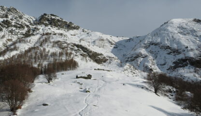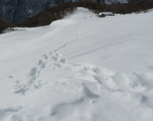 Le racchette si calzano poco dopo la Chiesa, io ho fatto il sentiero estivo, già ben marcata la traccia fino alla vetta. Nella parte…