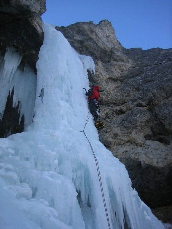 Molto bella con ghiaccio ottimo sul tiro centrale un pò meno sul primo tiro.giornata bellissima con temperature miti.Oggi solo io e Cesare sulla Ciucchinel.Ciao Cesare!!!