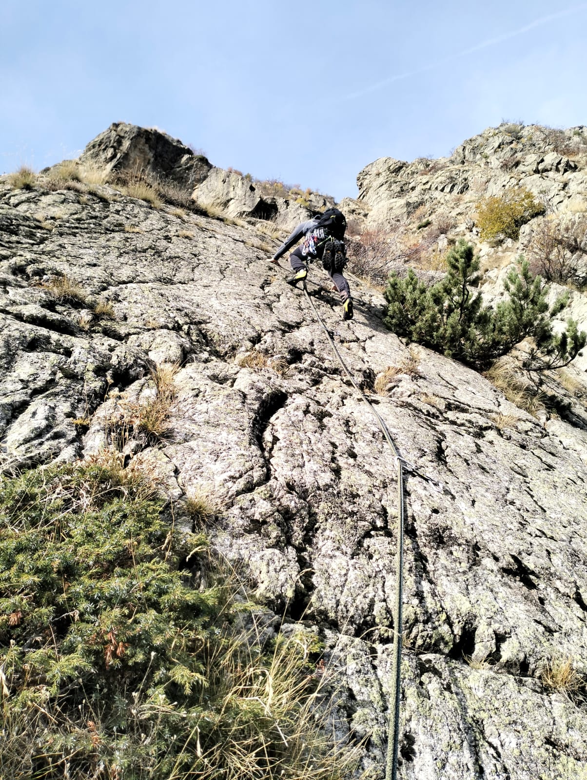 | patrdalm | Paola sul passo di 6a di L4 | patrdalm | La placca iniziale di L1, diff. 5b | patrdalm | La bella placca di 5a su L3 | patrdalm | Patrizio su L5, diff. 5c+.