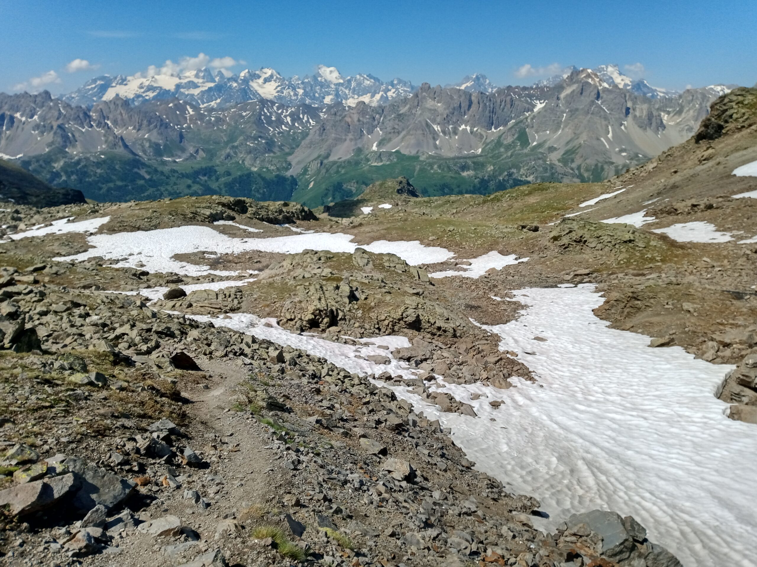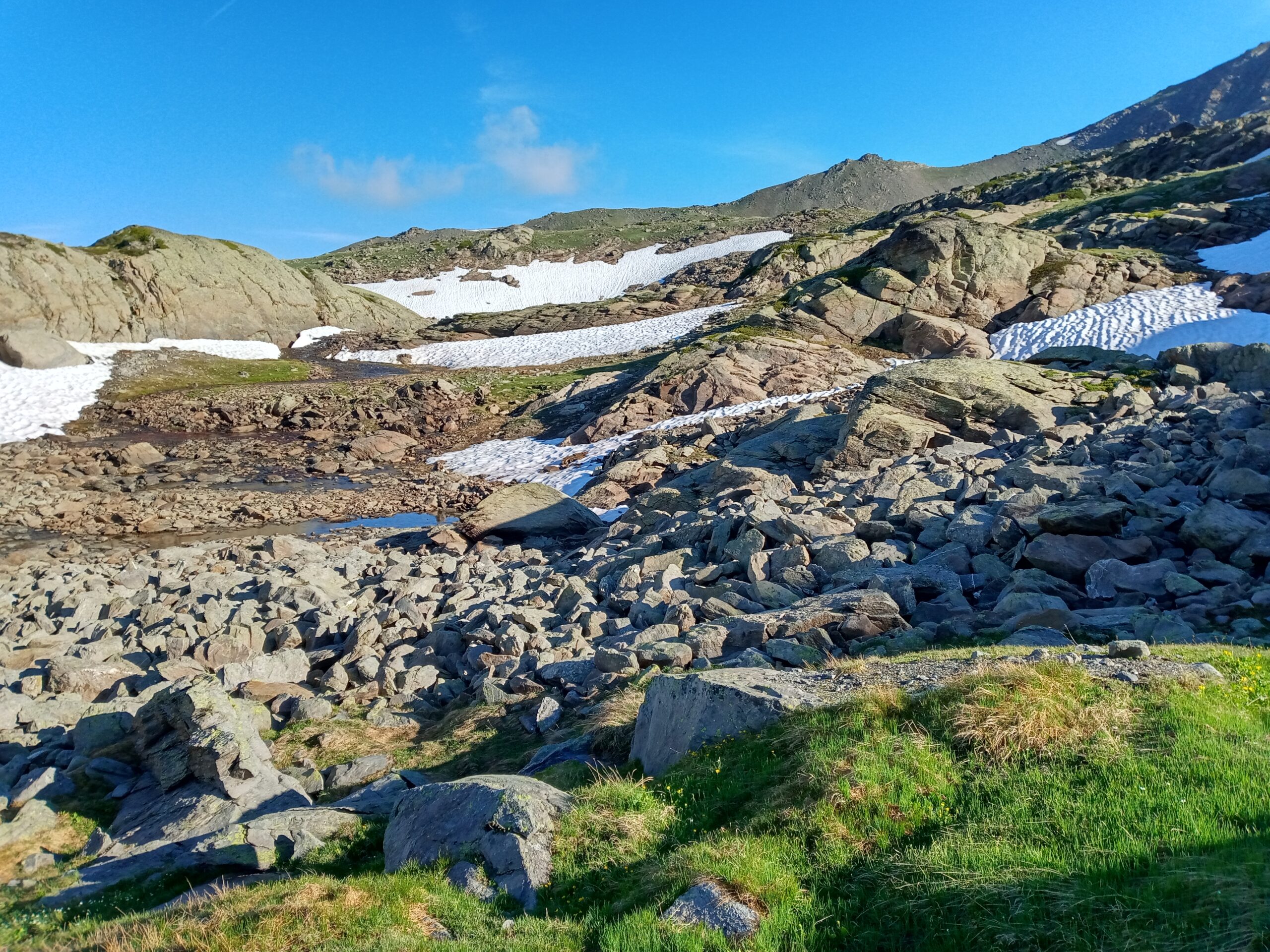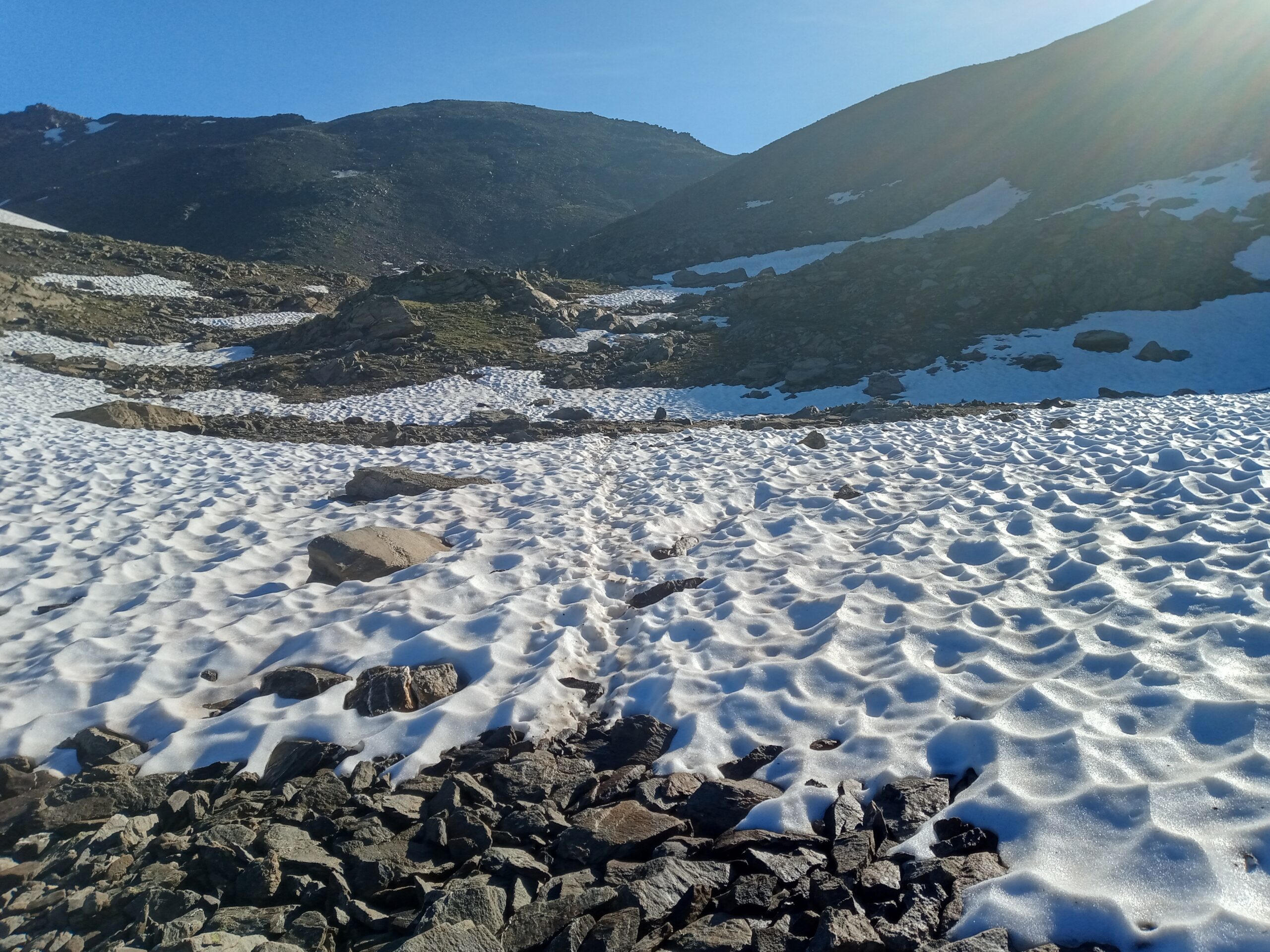 | pedrito | al mattino presto ancora in ombra | pedrito | primi nevaietti alle "rocce montonate" | pedrito | prima della salita al col Gran Cros | pedrito | punta | pedrito | il facile crestone di salita | pedrito | per la salita dal col du Vallon, rimane poca roba... | pedrito | sempre bel posto con la sua miriade di laghetti