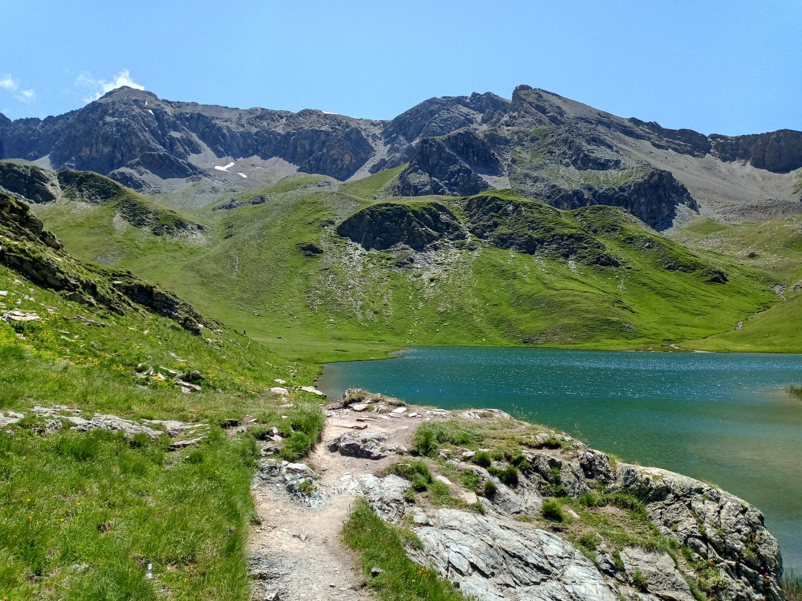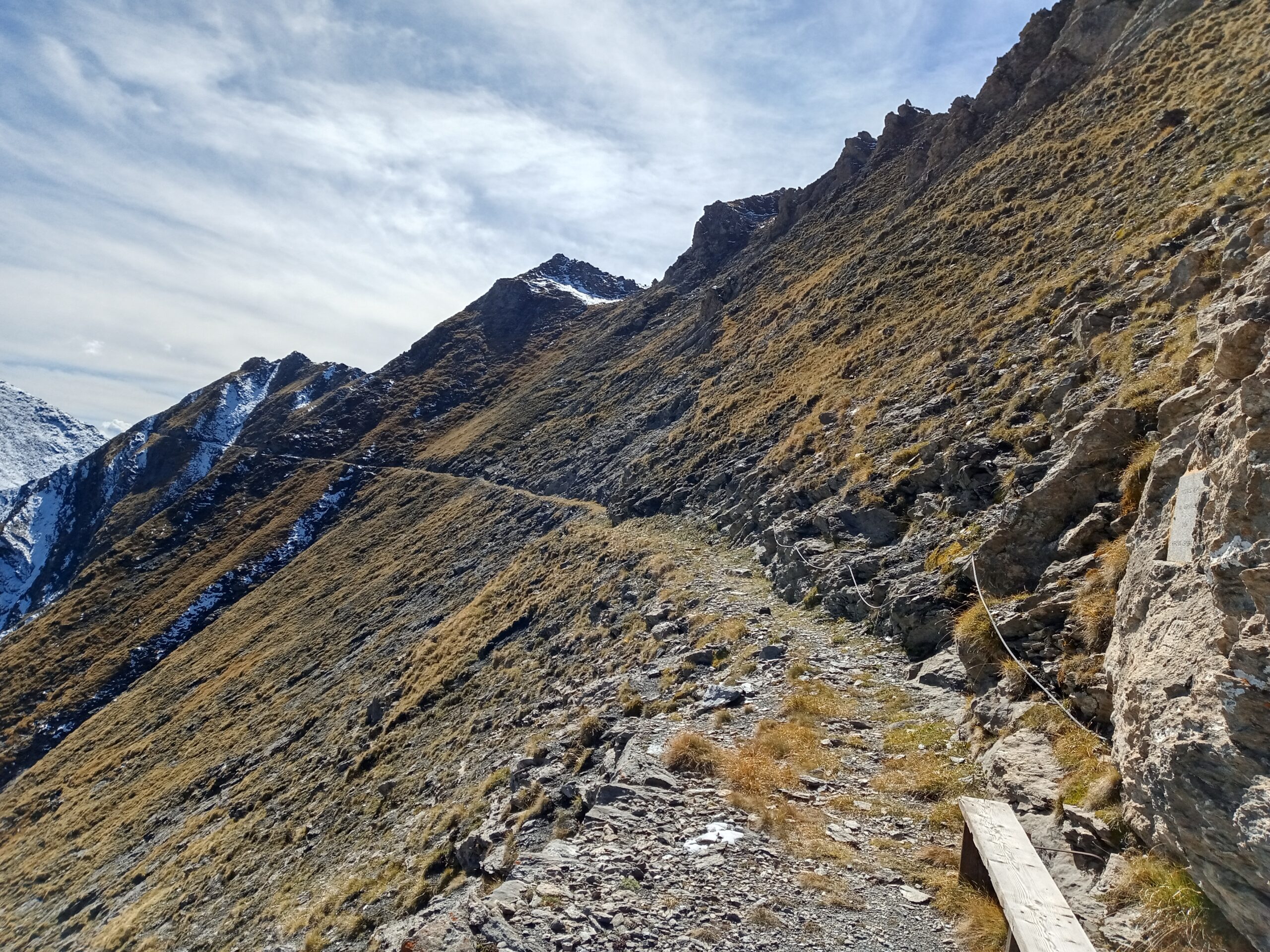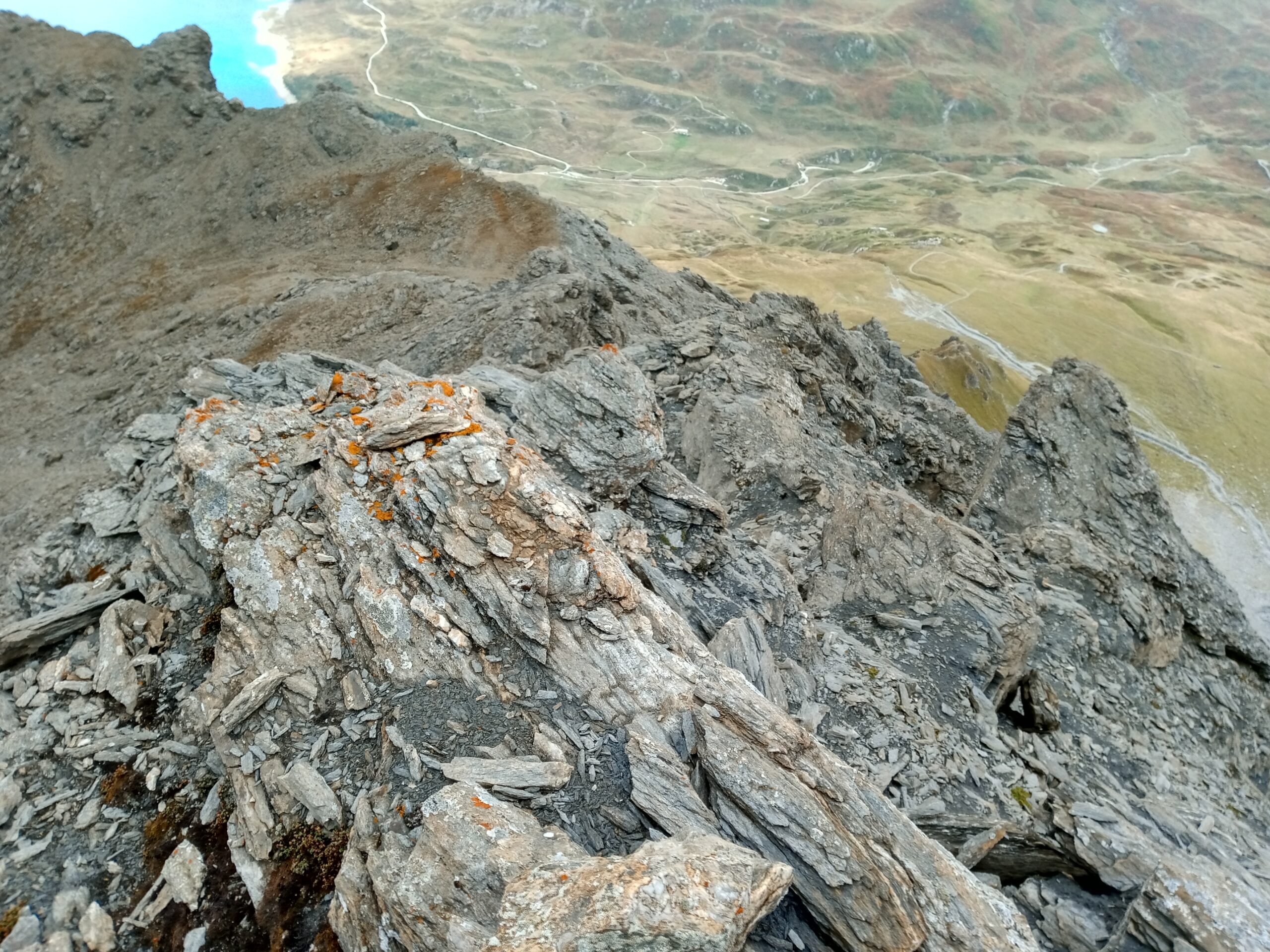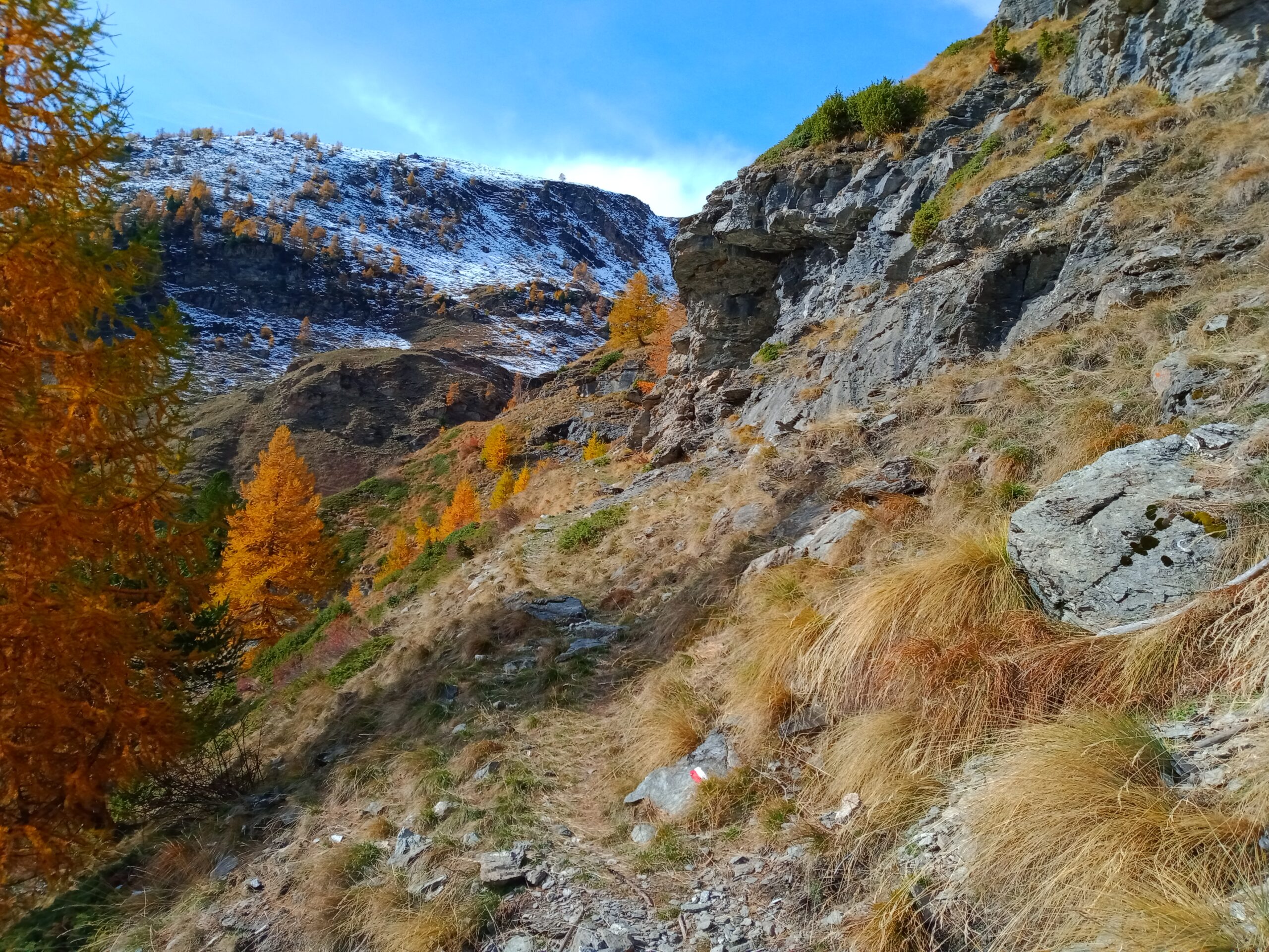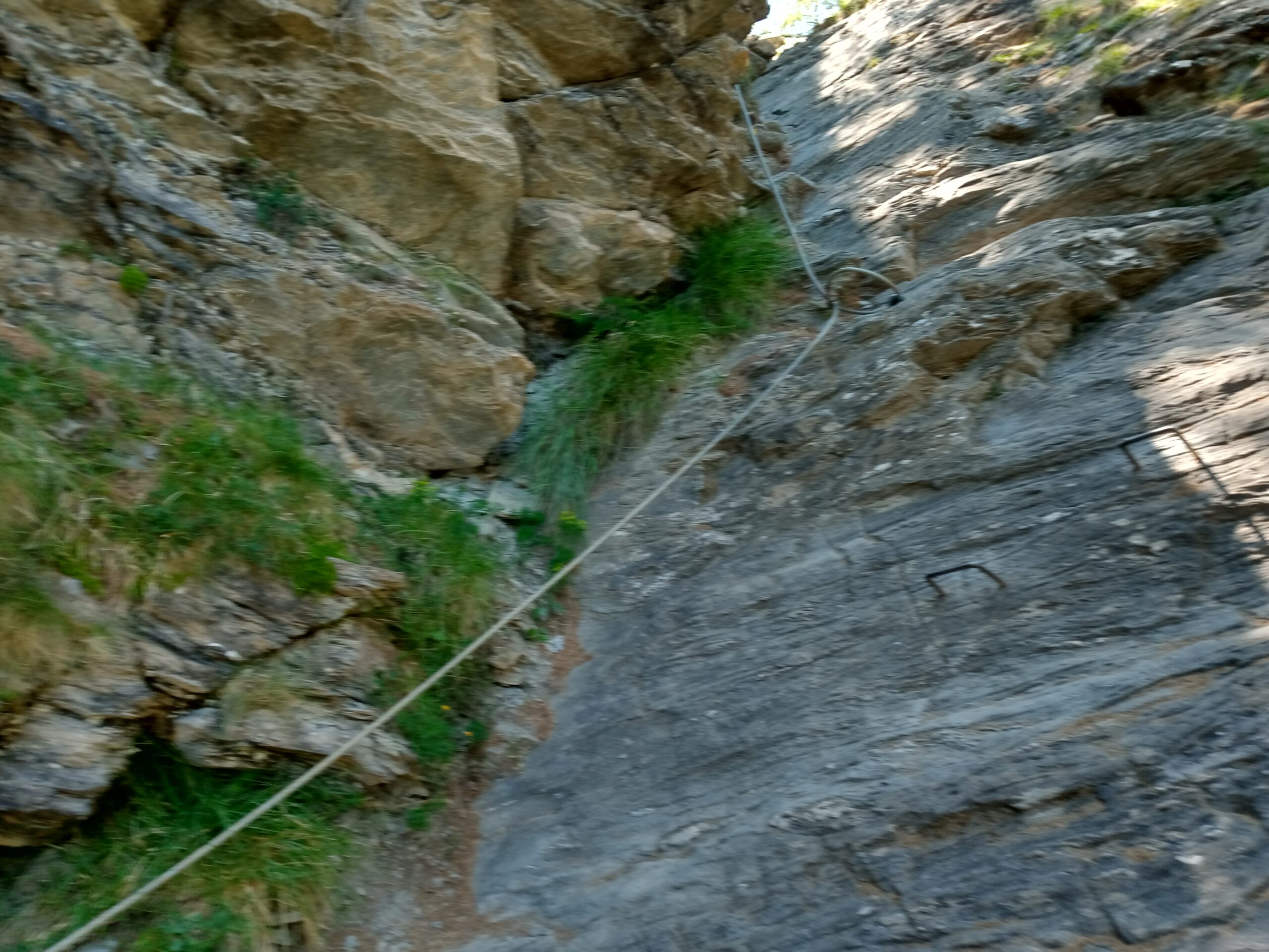 | pedrito | Verso le Escalinade | pedrito | La Turge | pedrito | il passaggio caratteristico a fianco della Turge | pedrito | sfasciumi | pedrito | il vallone superiore | pedrito | Verso i laghetti superiori | pedrito | Lac Cordes con sullo sfondo le due punte con il lungo crestone di collegamento | pedrito | il facile attrezzato evitabile con facile sentierino esposto sulla dx salendo (X rosso e bianco su pietrone)
