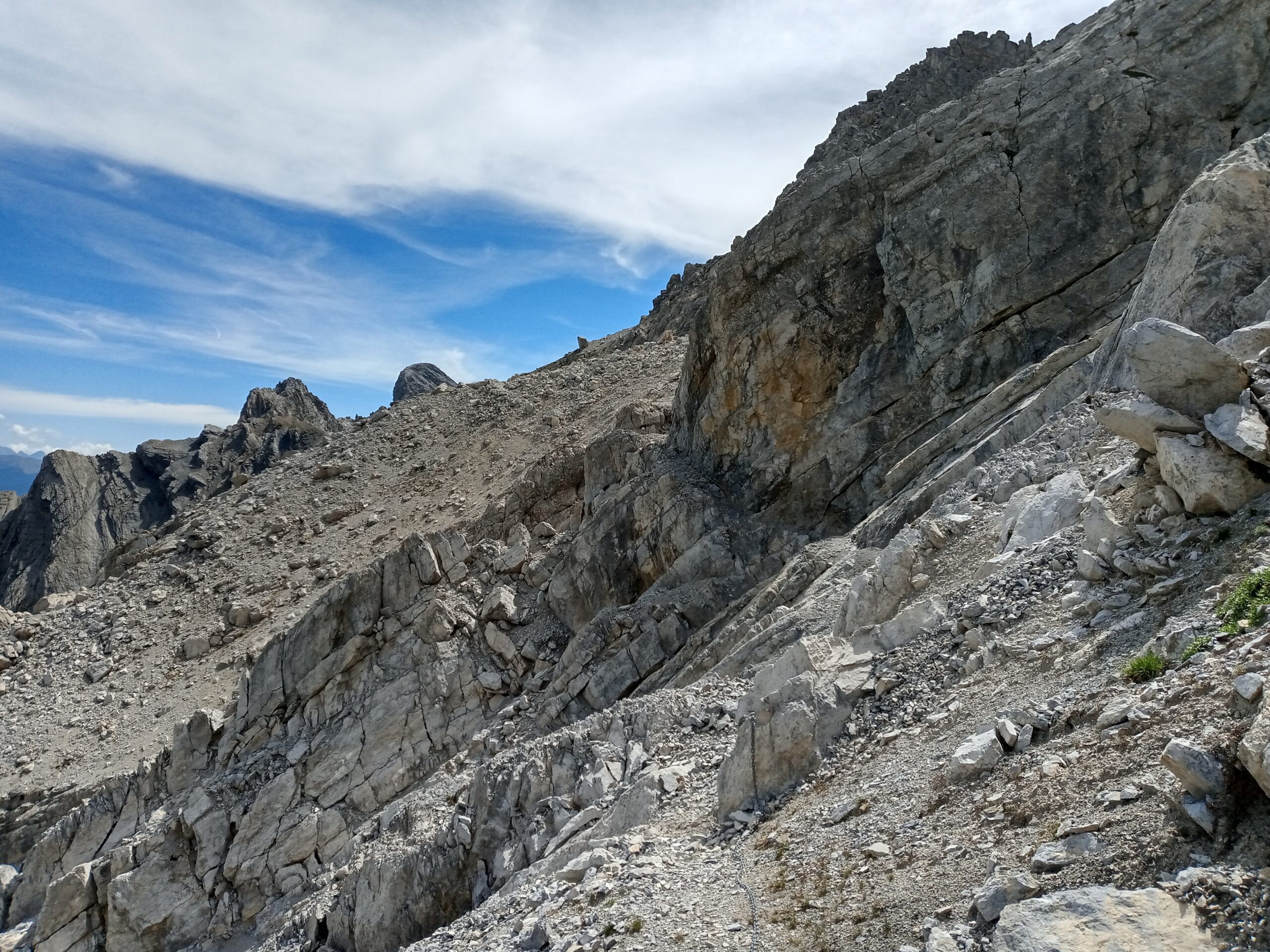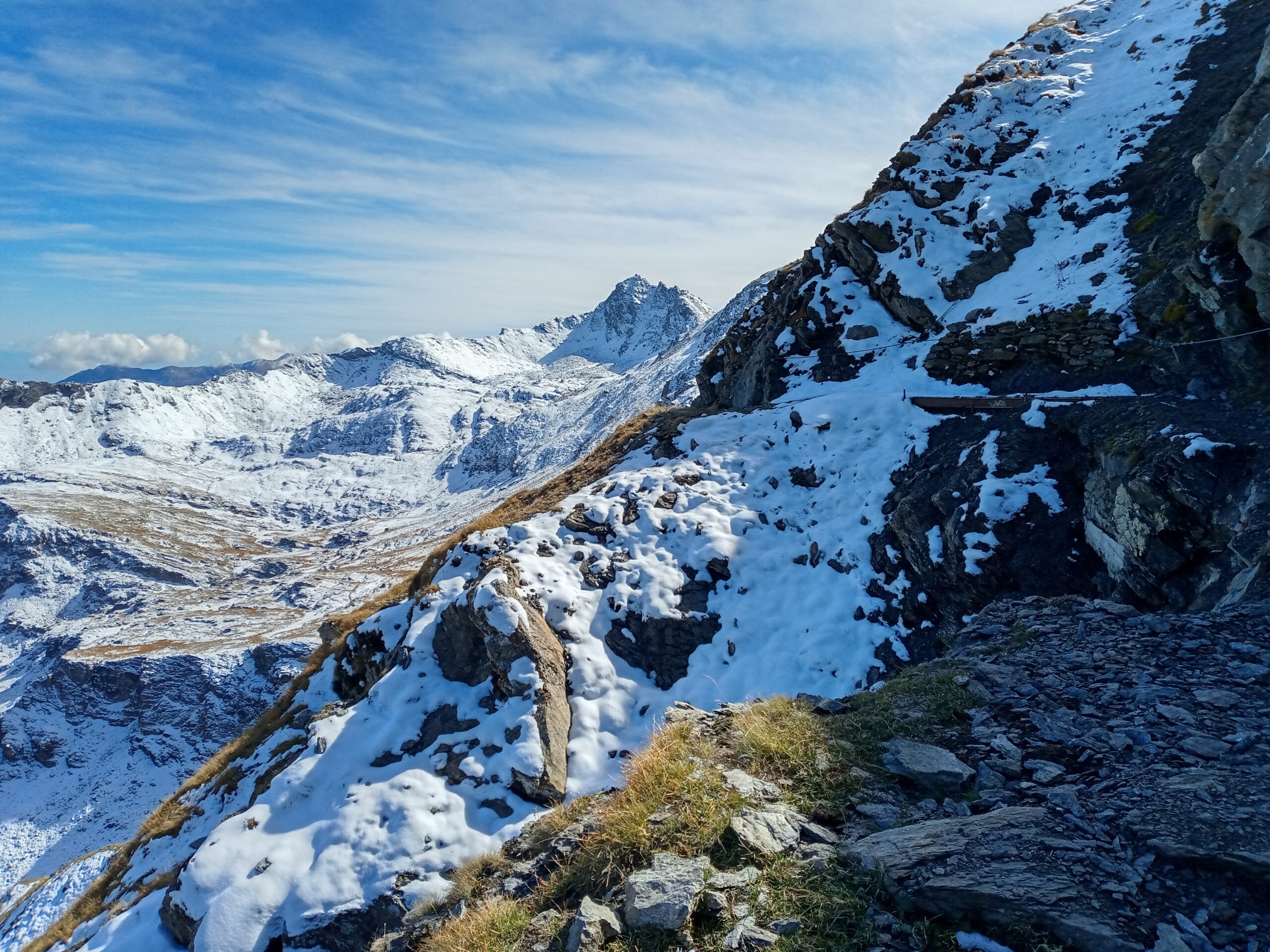 | pedrito | il canalone con la vecchia corda ancorata al masso: sempre meglio di niente :-) | pedrito | uno dei numerosi punti in cui la catena è totalmente saltata (come un tempo), ma questo tratto è relativamente facile da percorre a parte l'infido ghiaino... | pedrito | qua la traccia è più esile, ma il cavo è in ottime condizioni | pedrito | dal Passo | pedrito | la bella galleria in ottime condizioni | pedrito | bel passaggio | pedrito | comunque sempre bella montagna