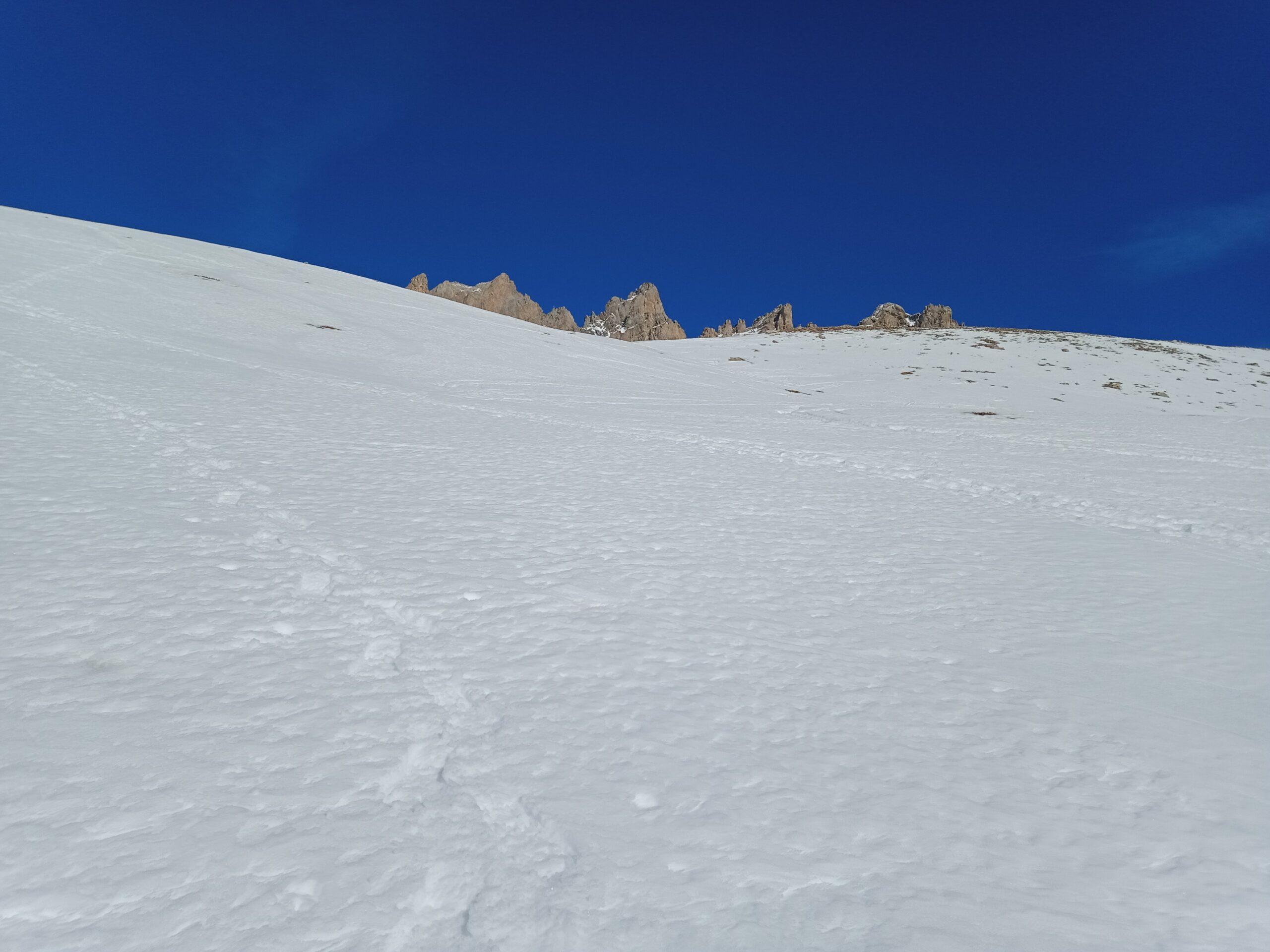 | pedrito | Dalla vetta verso l'Encestraye | pedrito | Verso l'interessante crestone Nord- ovest e la Meyna sullo sfondo | pedrito | Oronaye e lavorio del vento sui Versanti Sud | pedrito | discesa da fare attenzione "nivologicamente parlando" | pedrito | Placca... vicino alla traccia di salita | pedrito | fine parte ripida, inizia il bel vallone | pedrito | qualche lastra sotto le rocce... | pedrito | tutta bella farina | pedrito | Farina 2 | pedrito | parte finale decisamente buona