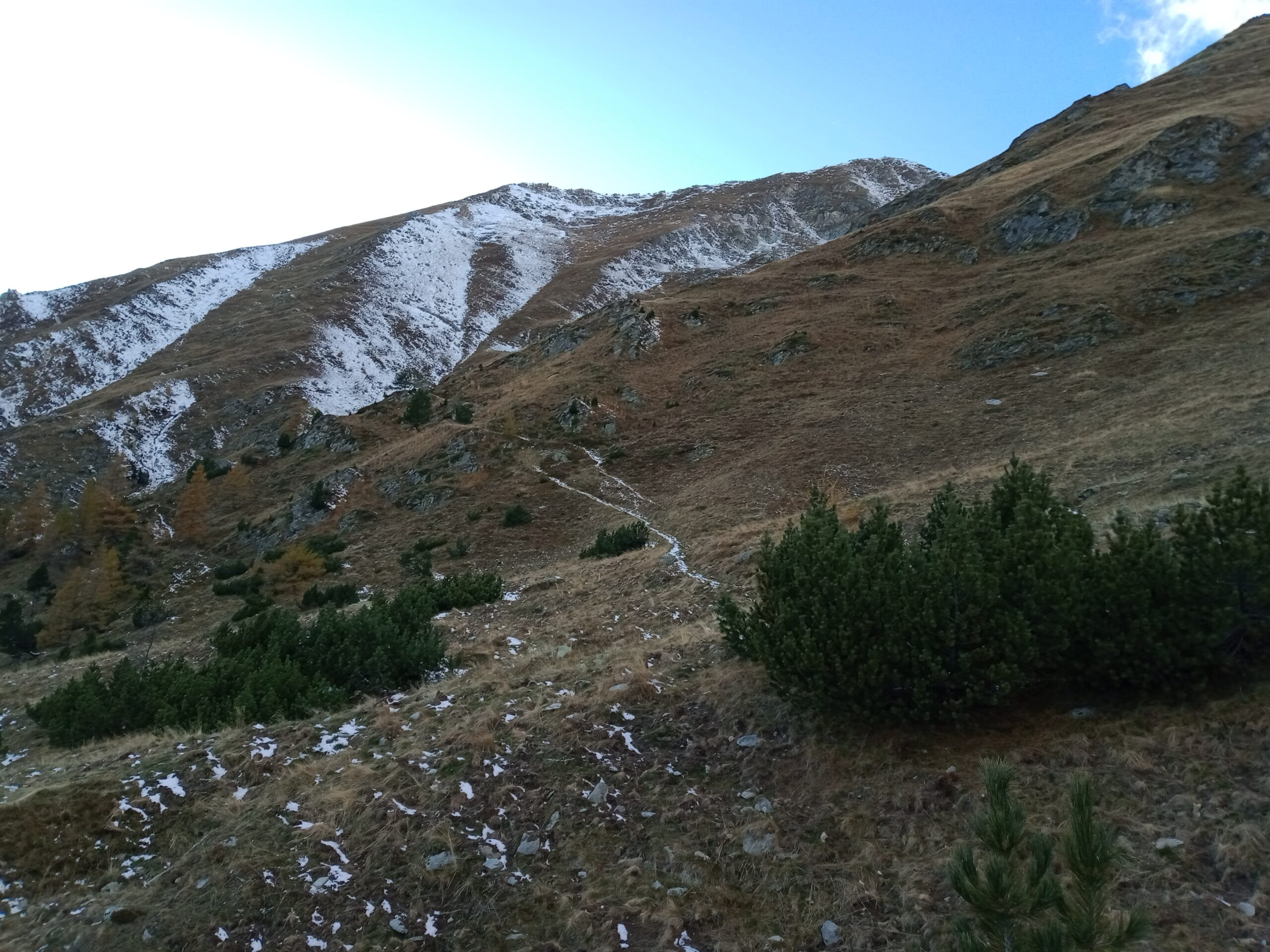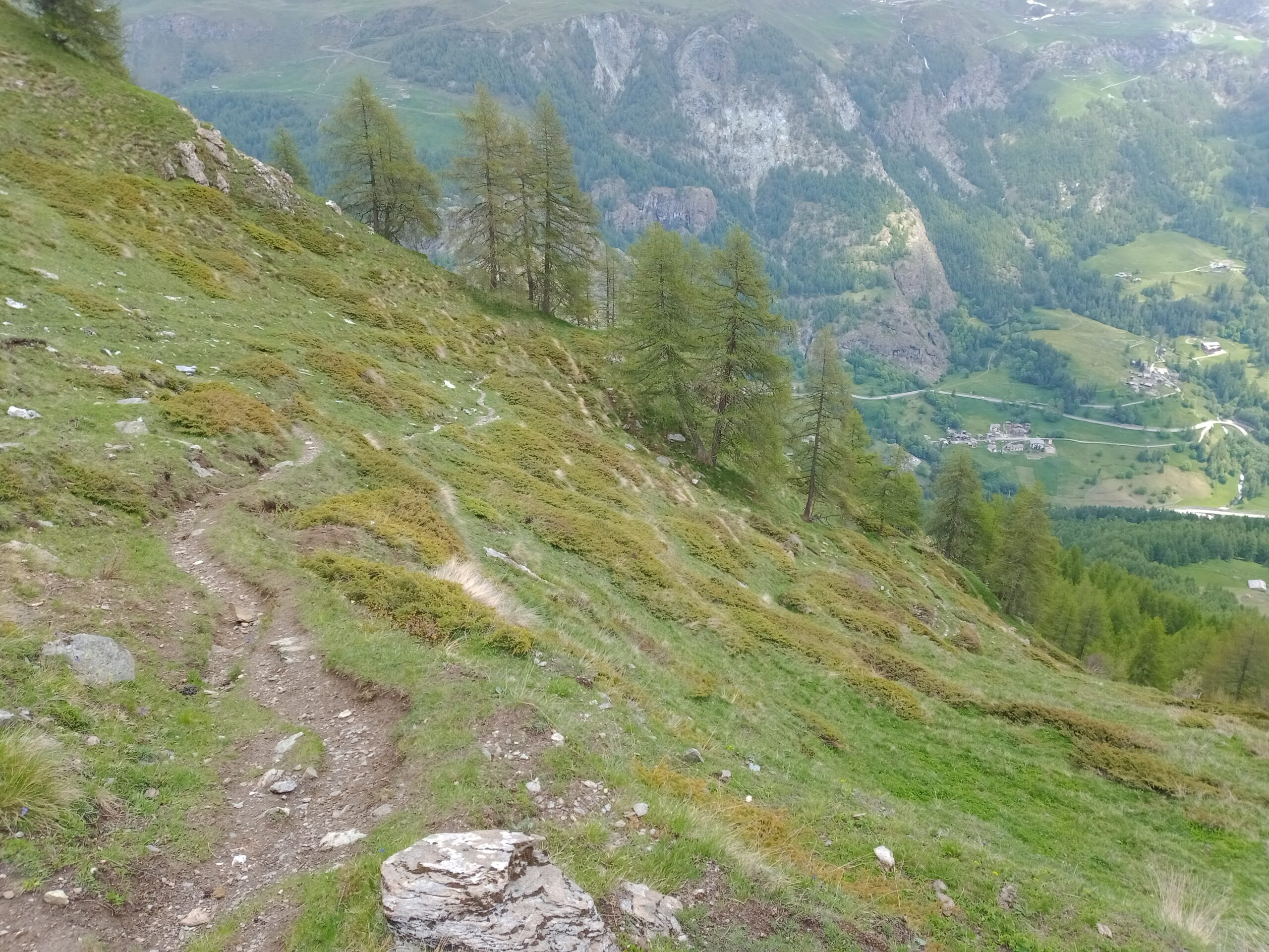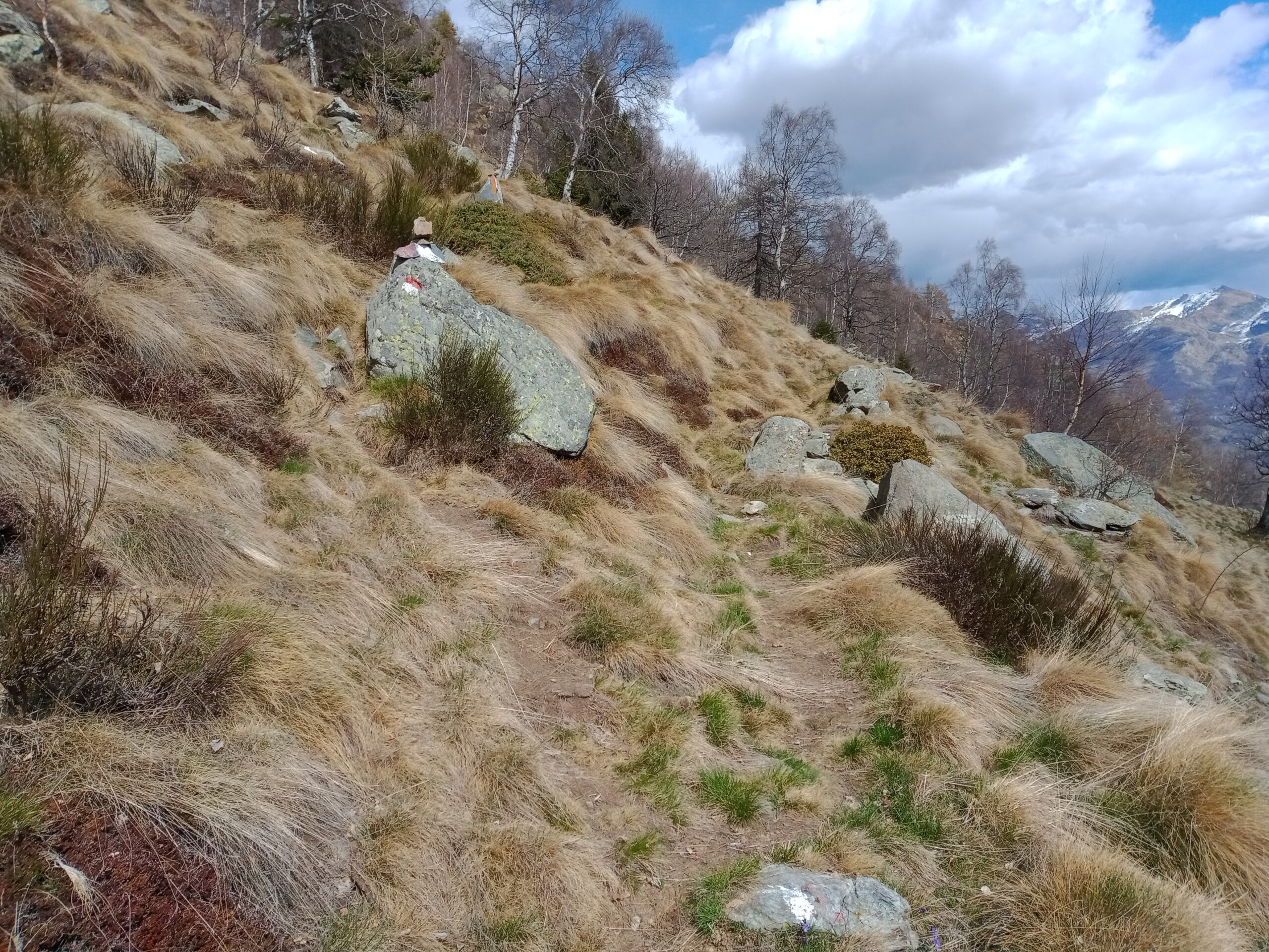 | pedrito | inizio prima neve sul crestone | pedrito | neve aggirabile, ma non banale... | pedrito | Vista sul Cervino Monte Rosa | pedrito | il canale di salita da sopra, su buona traccia | pedrito | il tratto coi gradini | pedrito | le mitiche "coppelle" | pedrito | dal cartello delle Coppelle | pedrito | qua ANDARE A SX (salendo) no proseguire dritto sulla traccia più marcata | pedrito | Versante di salita con l'evidente canalone e la frazione di Scalaro