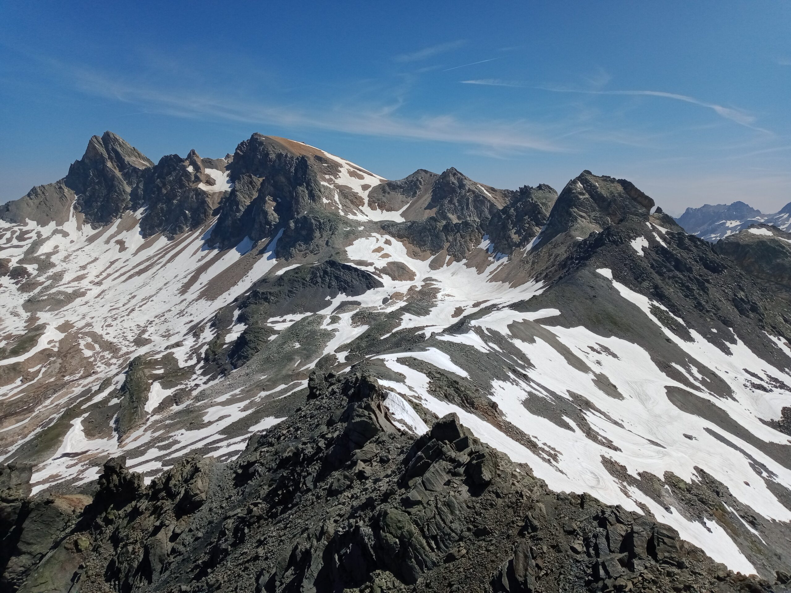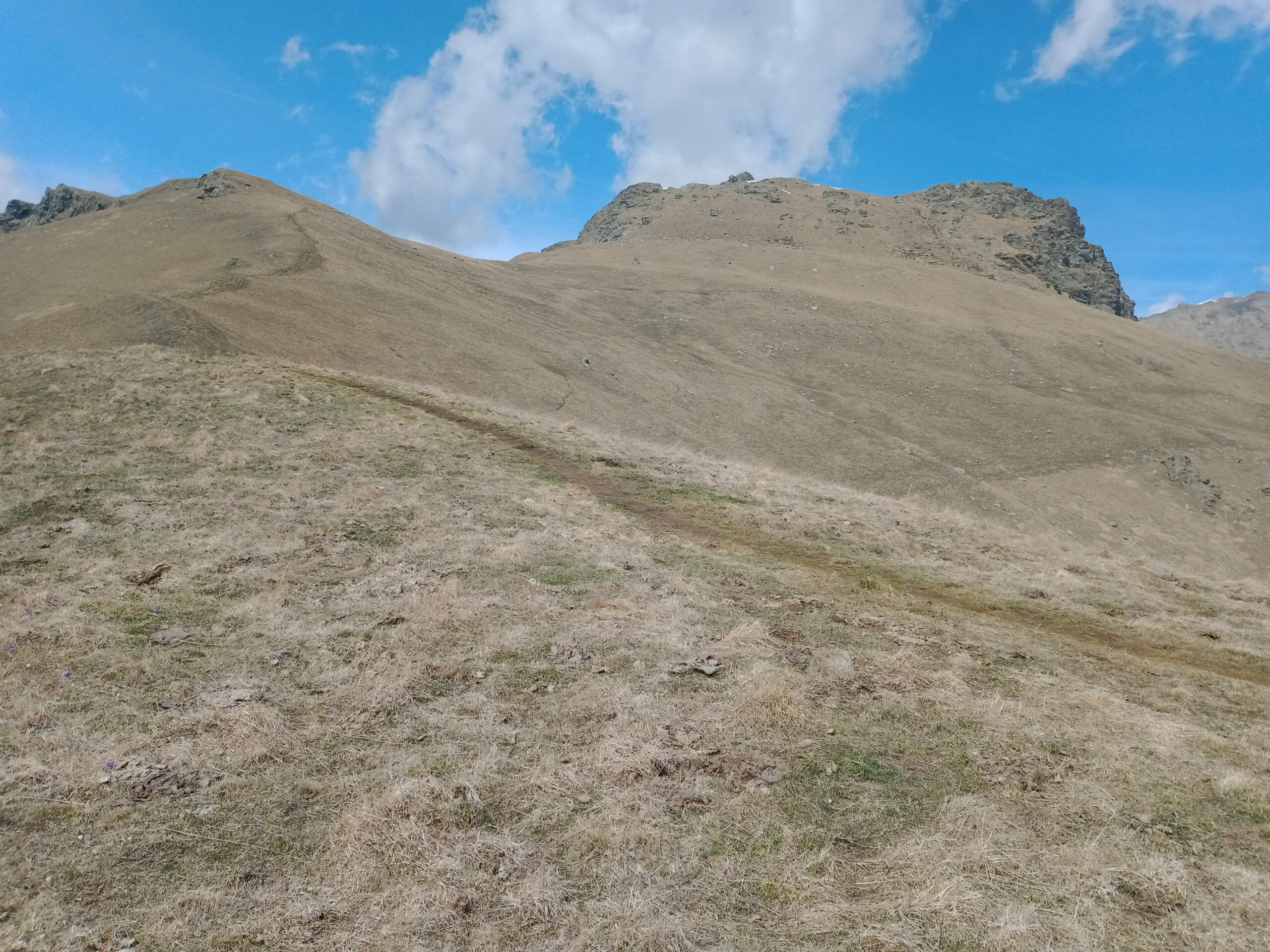 | pedrito | Salendo alla Nord, si vede la Discesa della sud e i residui di neve, evitabile sulla sx (scendendo) | pedrito | La vera Punta Nord (la più alta di tutte) | pedrito | In discesa dalla Nord sul versante Ovest | pedrito | Il laghetto ancora ghiacciato | pedrito | Bivio per sentiero di ritorno (bolli gialli) per i denti della Quinnseina | pedrito | Bel traversone verso la Punta Sud | pedrito | in prossimità del tratto attrezzato (superfluo) | pedrito | altre baite caratteristiche | pedrito | A le Raie quasi alla fine del traversone che si vede bene in alto sul versante | pedrito | Raccordati con la salita alla Sud