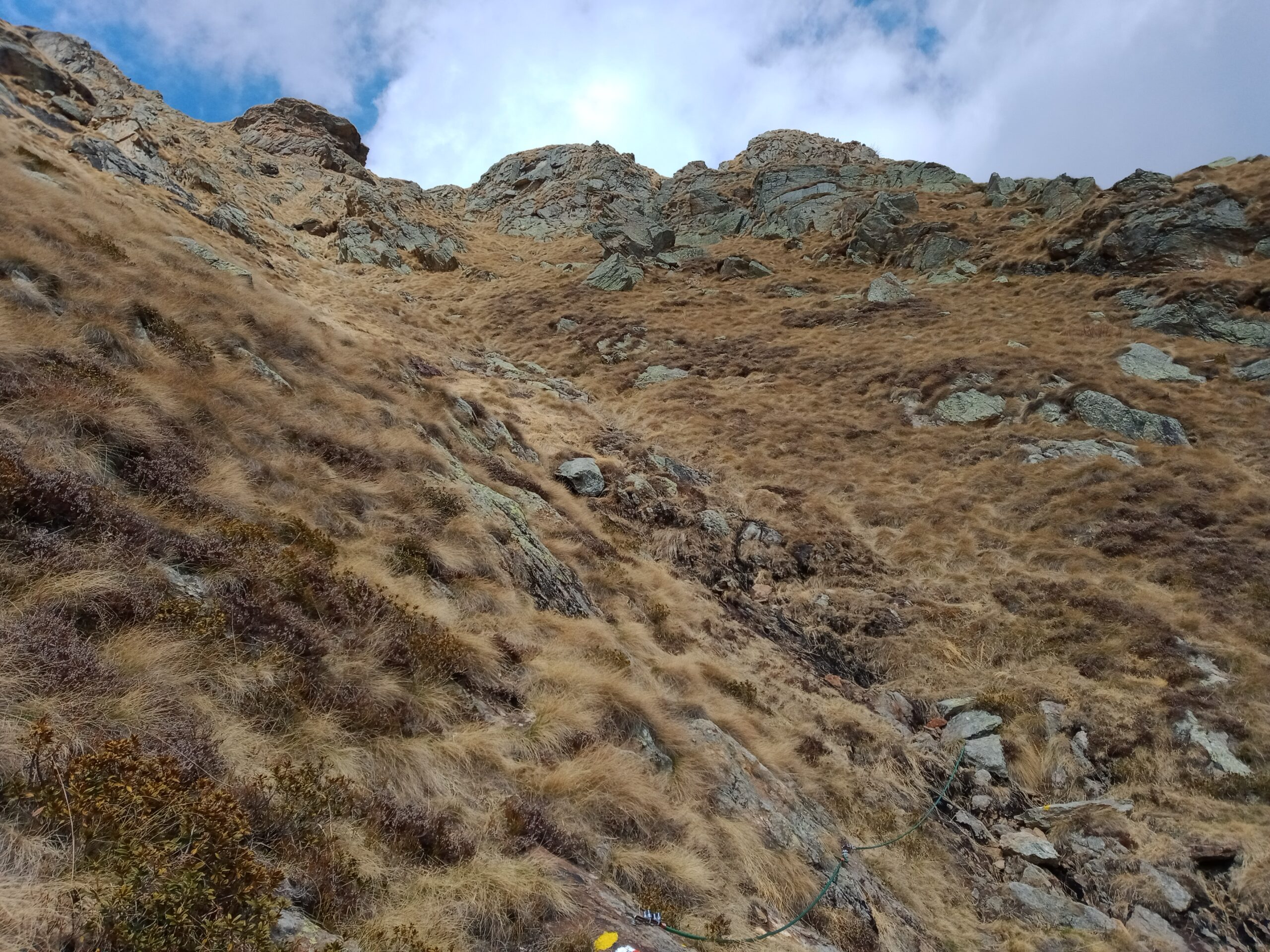 | pedrito | Dalla Punta e il meteo visibilità incerta fin dal primo mattino... | pedrito | Punta e bivacco della forestale | pedrito | primo tratto in discesa con primo canapone su placche scivolose, nell'intaglio si vedono gli altri canaponi | pedrito | primo o ultimi (scendendo) canaponi | pedrito | il bel sentiero a balcone | pedrito | Lago , Rifugio e Diga | pedrito | Scendendo sul 7 verso Liortere | pedrito | La interessante serie di gallerie
