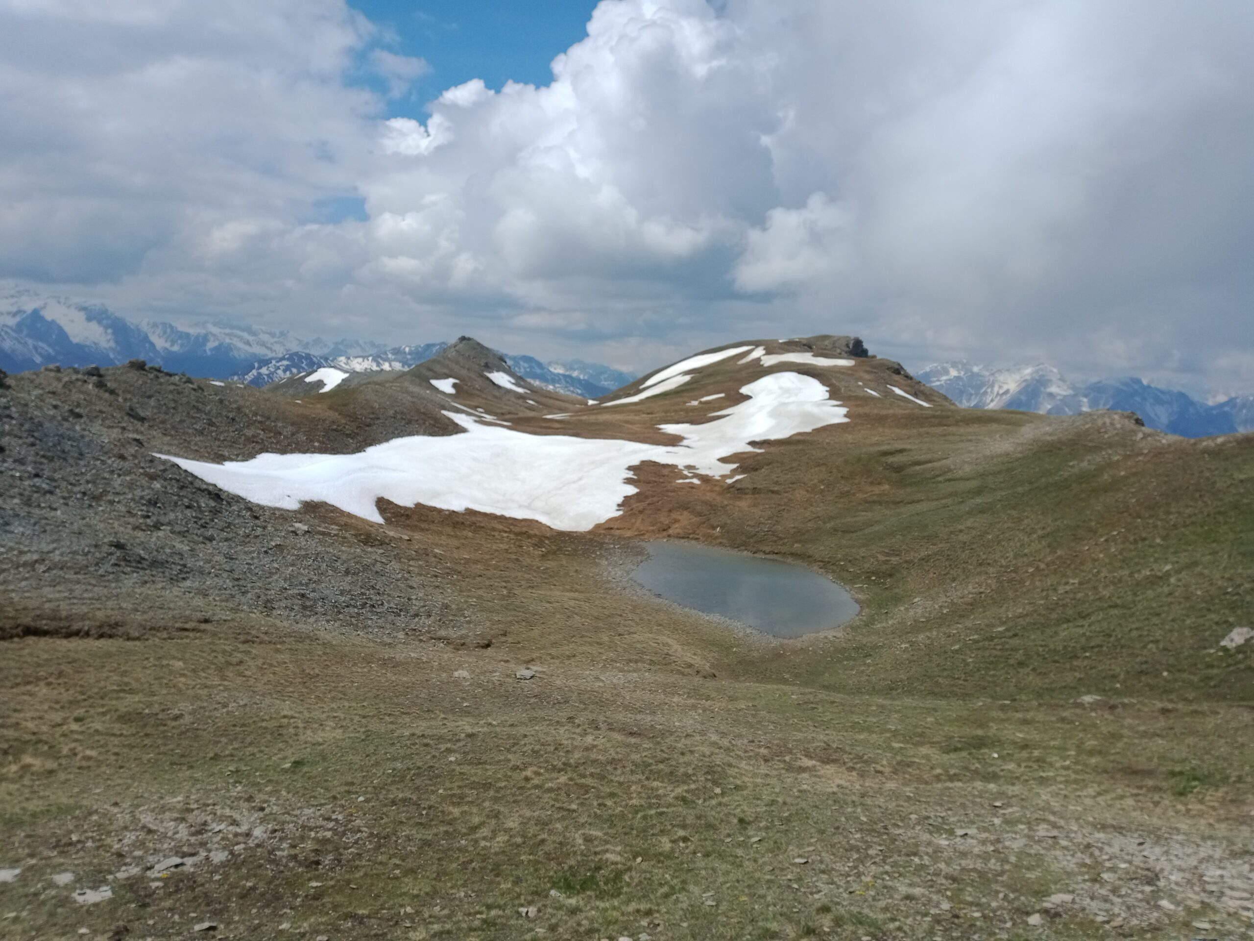 | pedrito | Dalla Cima del Gran Costa si vede avanzare il brutto tempo verso l'Assietta | pedrito | Scendendo dal Gran Costa si vede bene dove salire sul Blegier per evitare la neve | pedrito | La bella conchetta del Blegier, con il laghetto effimero | pedrito | Scendendo dal Blegier si vede bene dove salire per il Genevris senza toccare neve | pedrito | Dal Genevris si vede bene il Moncrons ormai pulito dalla neve