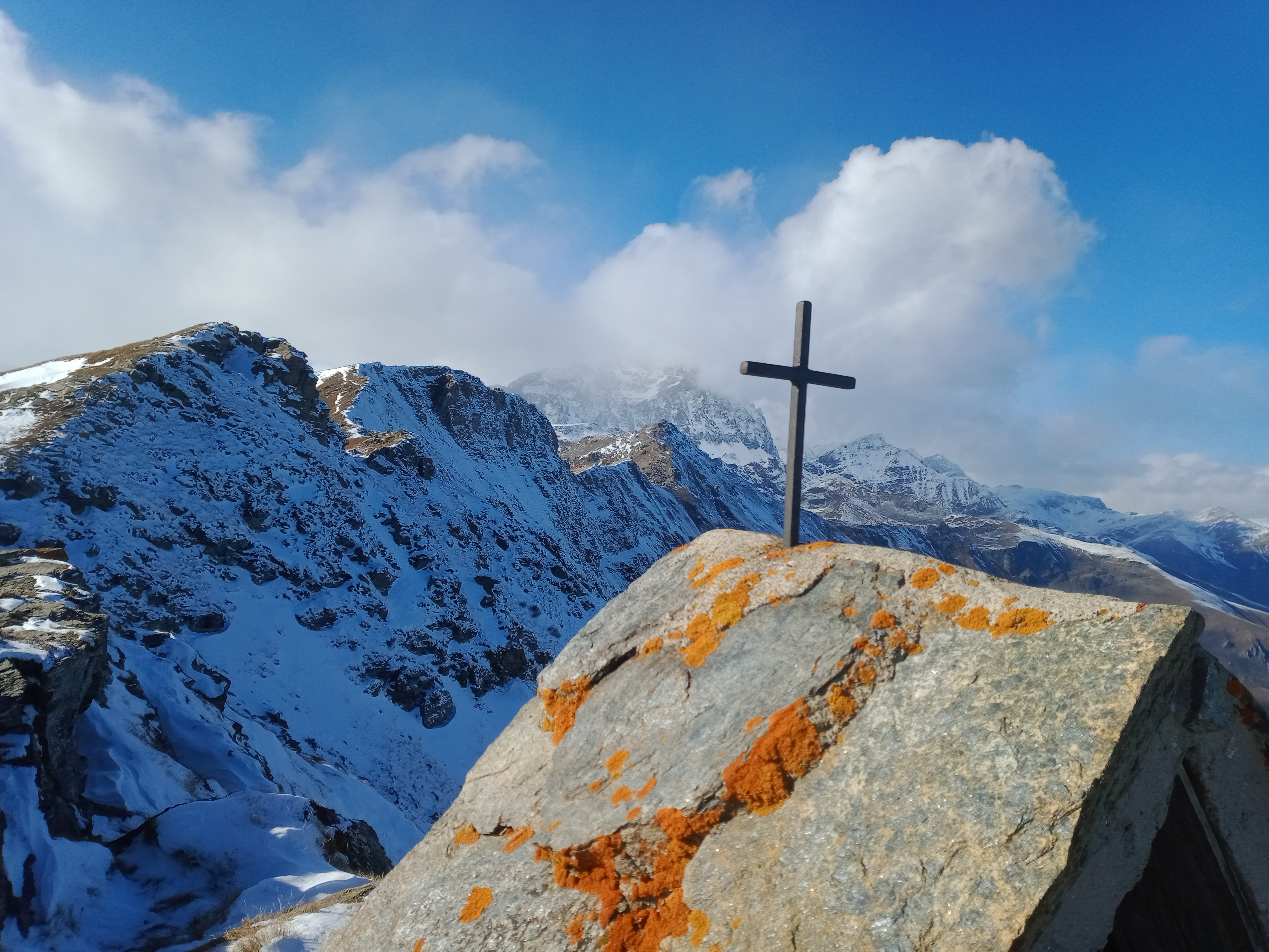 | pedrito | Partenza 2 | pedrito | Spettacolo | pedrito | Tratto finale prima del traverso verso la cappella | pedrito | In vetta, venticello... | pedrito | Condizioni salita finale | pedrito | Condizioni salita crestone est dal Colle di Cervetto | pedrito | Parte innevata del Traversone | pedrito | Parte di inizio prima del traversone finale | pedrito | Da qua si capisce meglio l’innevamento residui | pedrito | Lo spettacolo dei "contrasti" autunnali