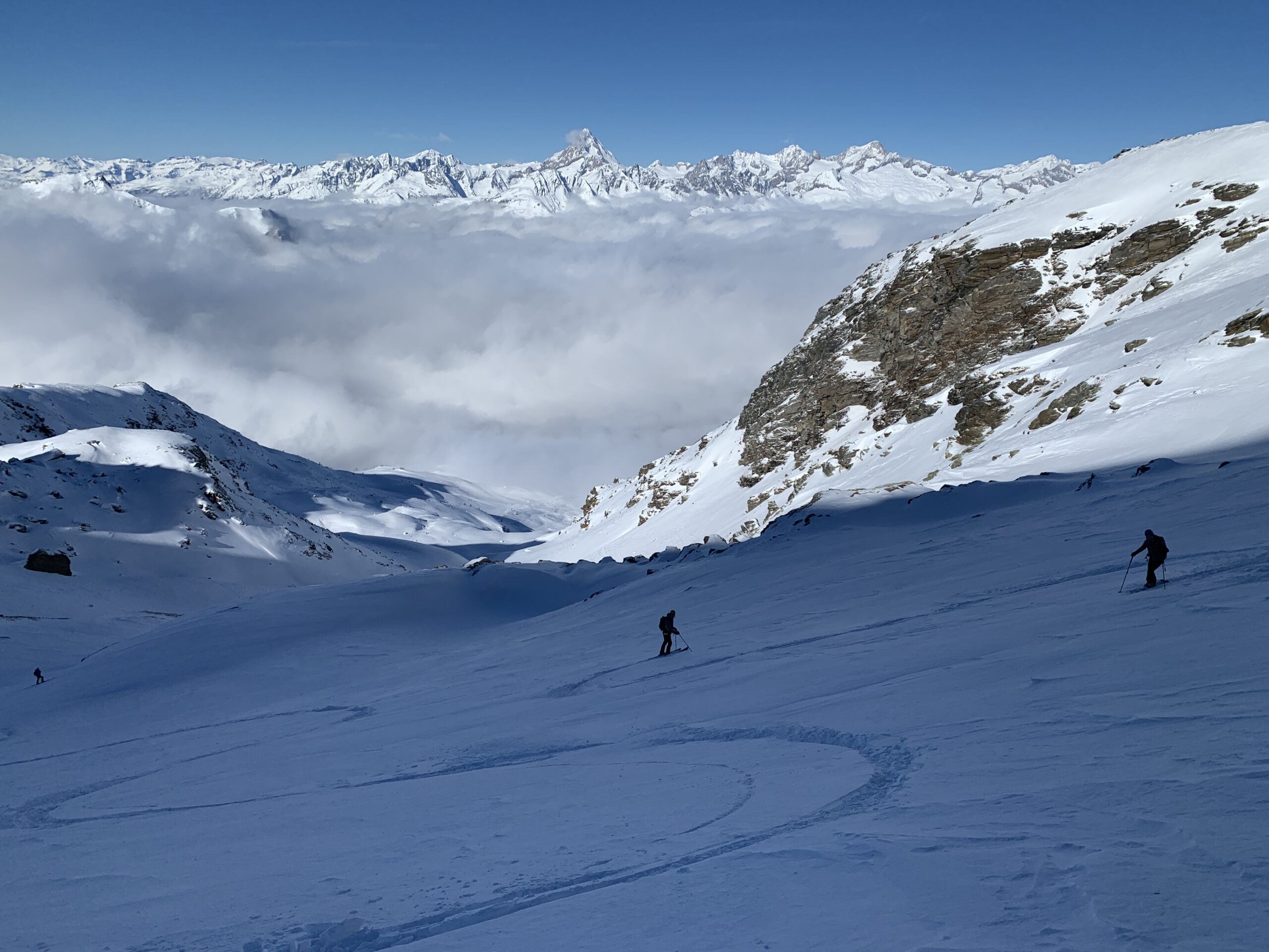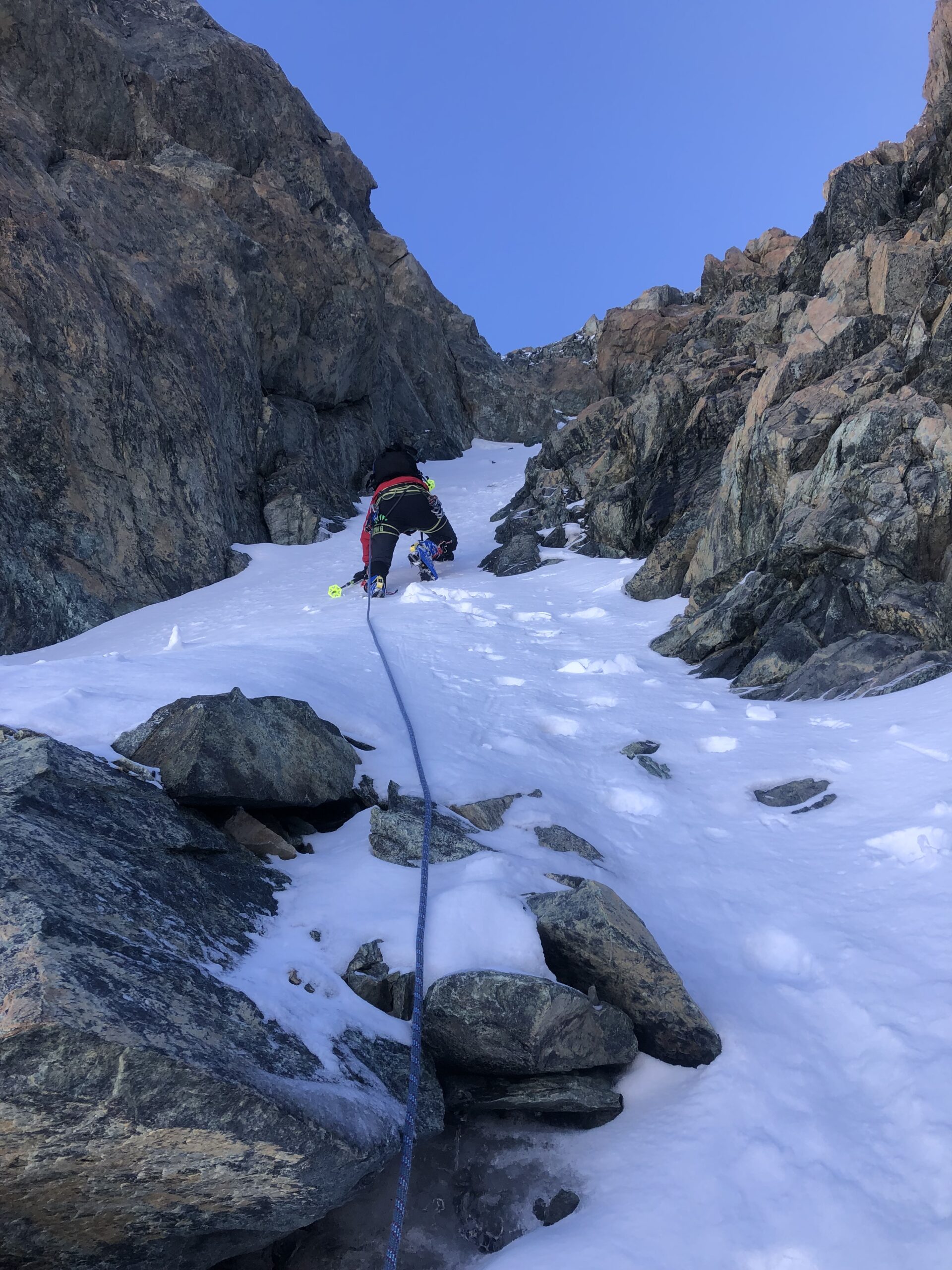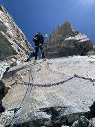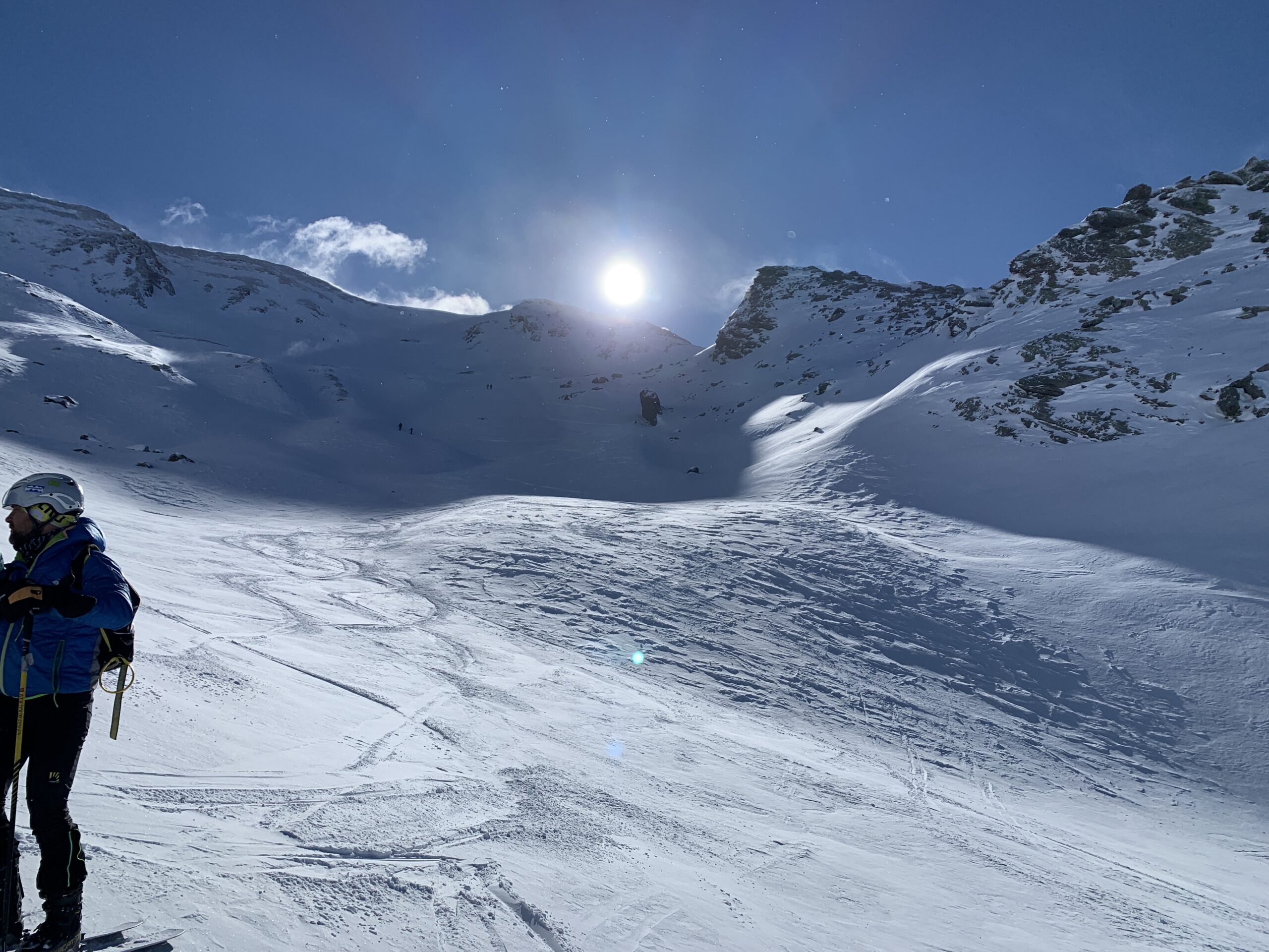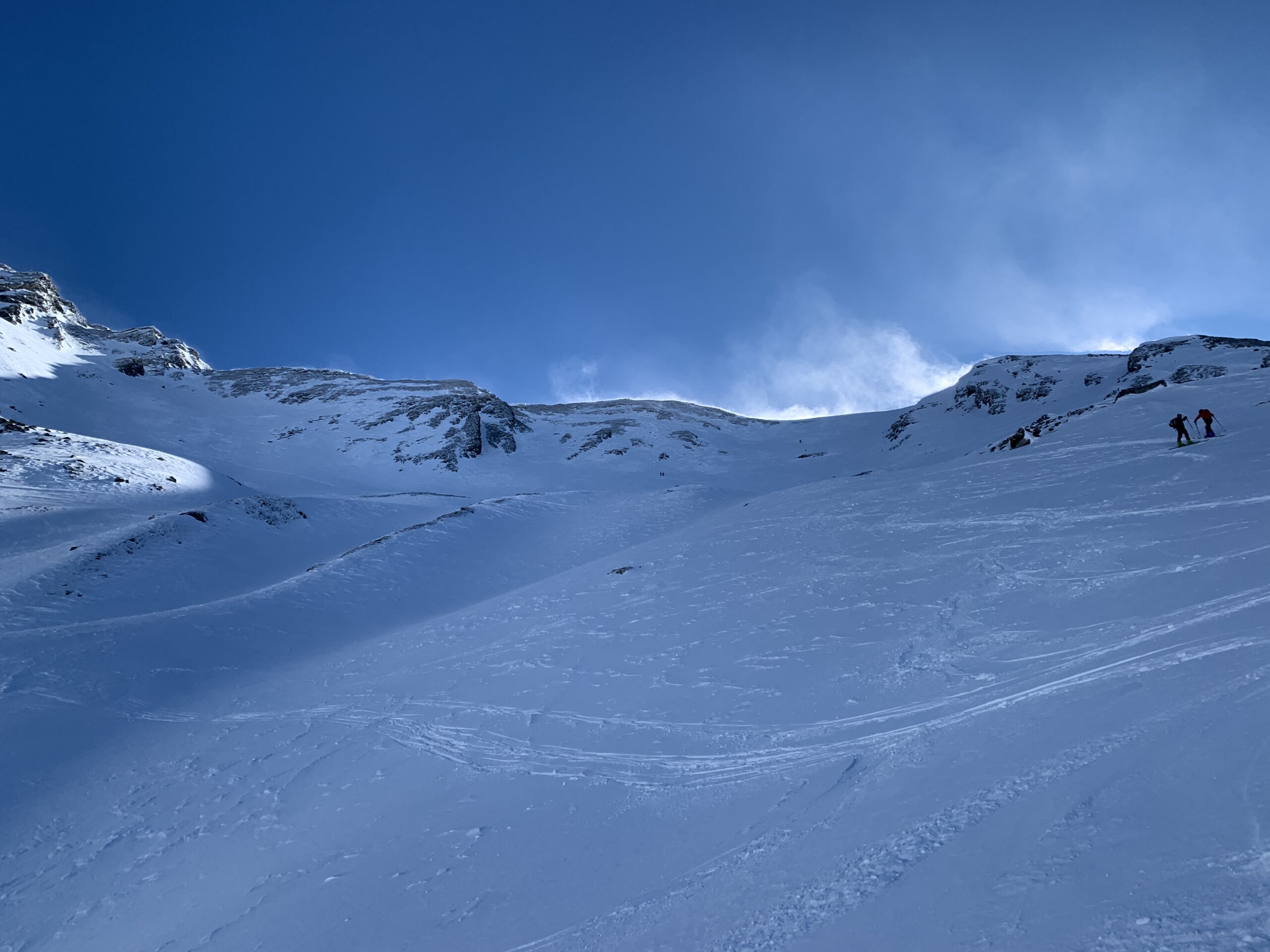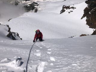 Oggi il vento spazzava la cresta del Madehorn. Siamo saliti sul pendio a sx del colle per evitare le raffiche in cresta. (Fermati 50 m…