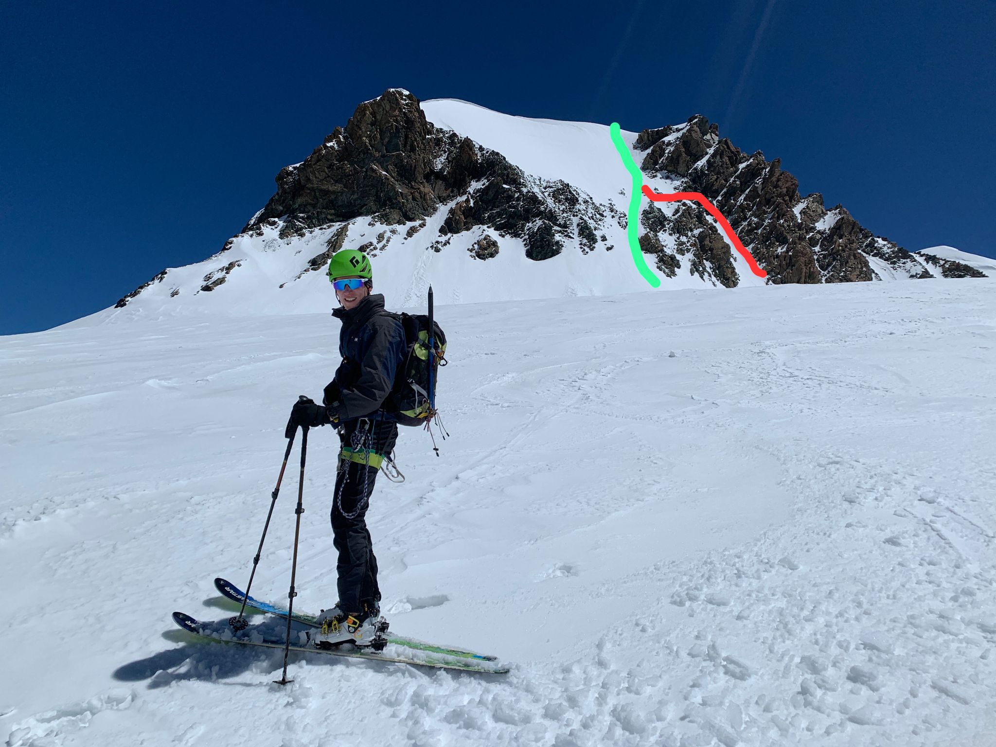 In giornata da P.Rosà, un vero viaggio (tot 14 km). Salito lo scivolo ovest (variante con roccette - foto in rosso): condizioni ok anche se la…