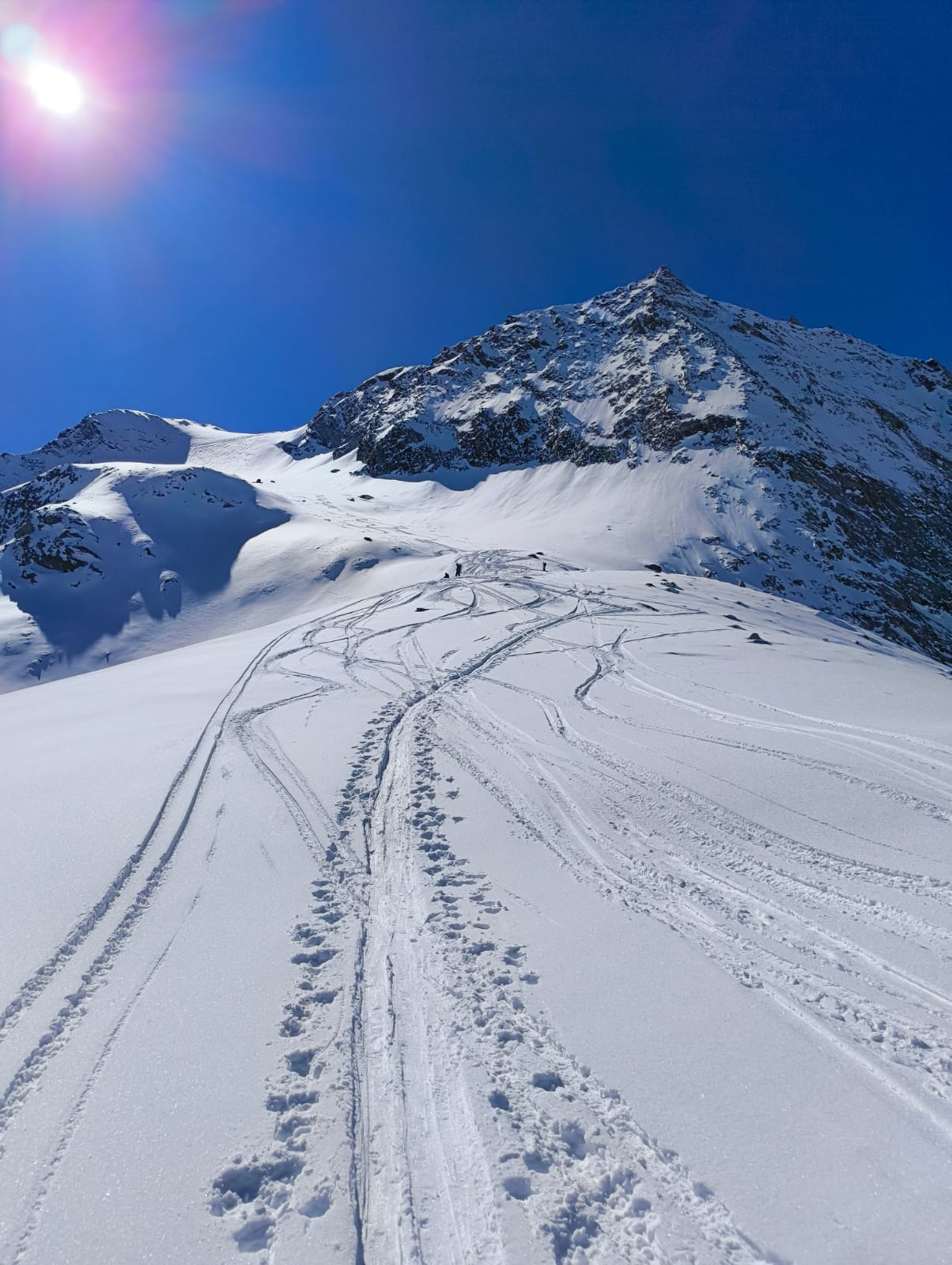 Si calzano gli sci a 2700 MT seguendo il sentiero da Rotenbiden quando si incontra il Gornergletcher. Passaggio con corde e scalini per passare nel…