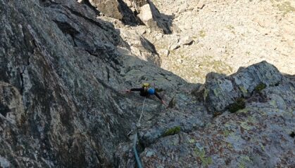 Pargheggiato alla base della diga, proseguito fino alla diga stessa. La relazione indica di salire SUBITO a destra; Noi abbiamo sbagliato e siamo risaliti per…