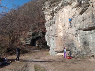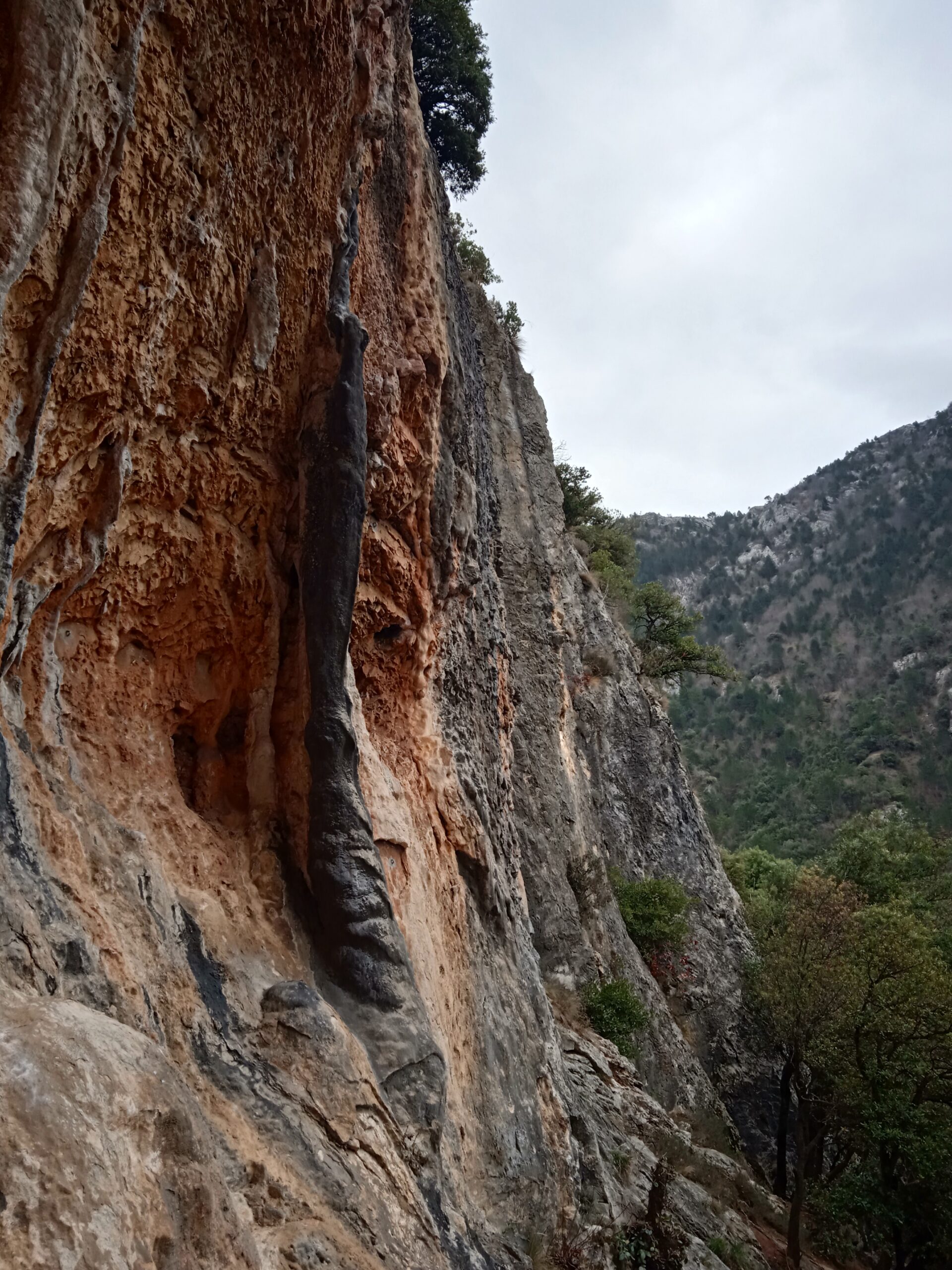 Il sentiero di avvicinamento è disastrato dalle varie alluvioni. La prima parte sul fondovalle e abbastanza a posto, il tratto di salita verso la falesia…