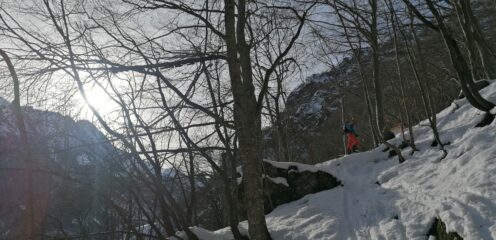 Gita per amatori del ravanage ma in ambiente fighissimo!! In basso neve pesante, faticoso scendere nel tratto di boschi a tra alberi, arbusti e pietre,…