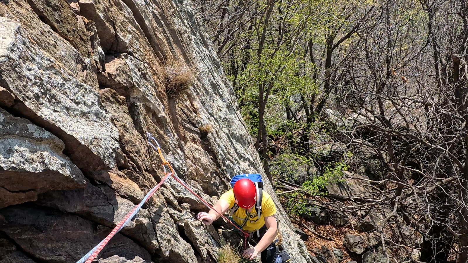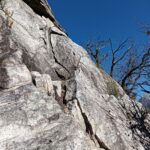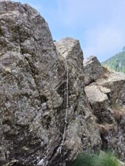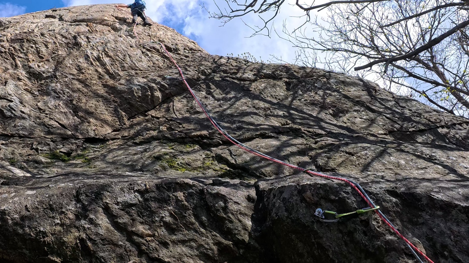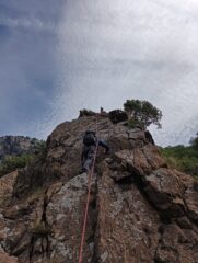 la via di 4 tiri ma conviene fare solo i primi due e poi calarsi , L1 partenza verticale con qualche passo di 5c…