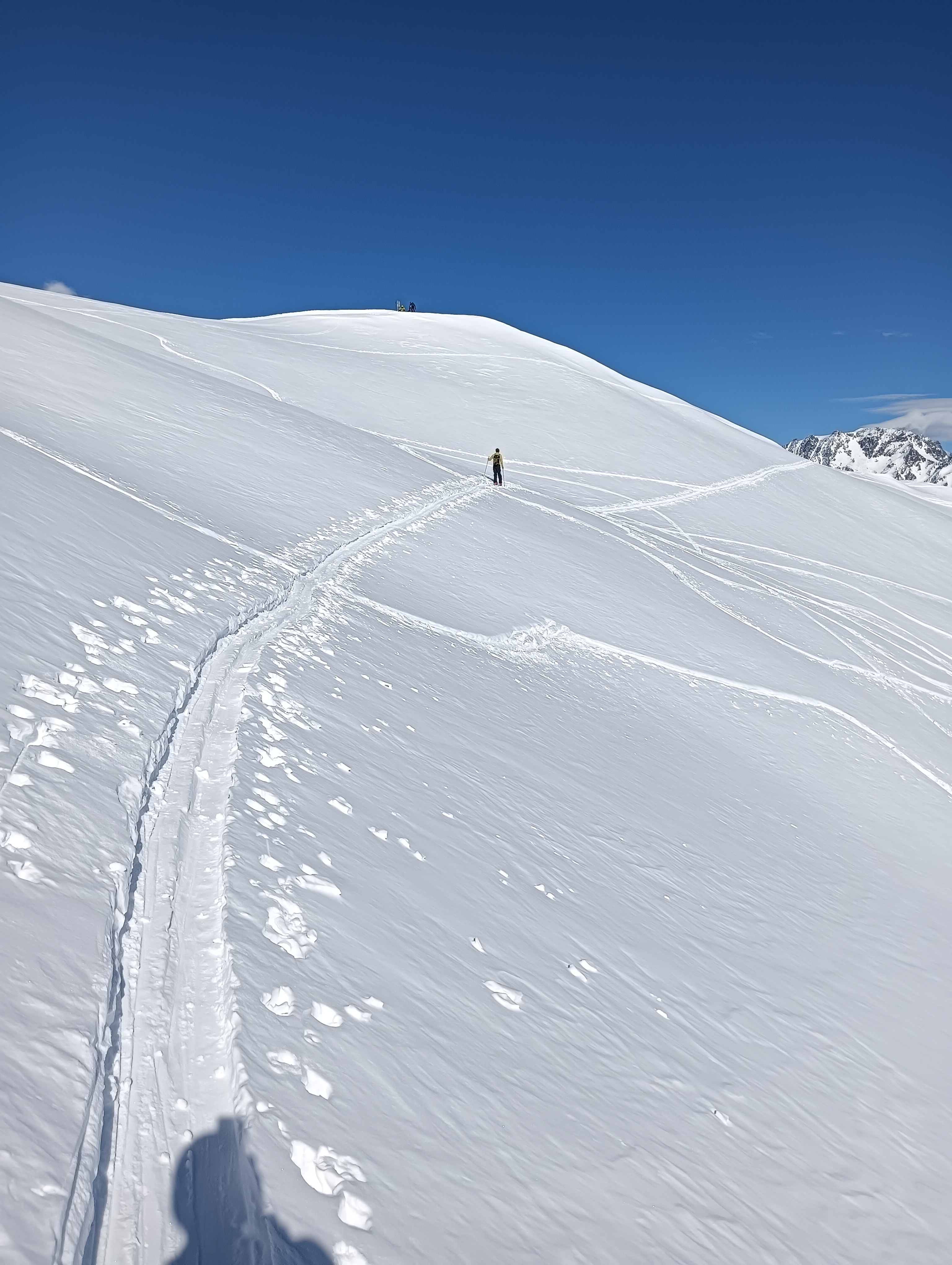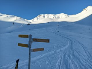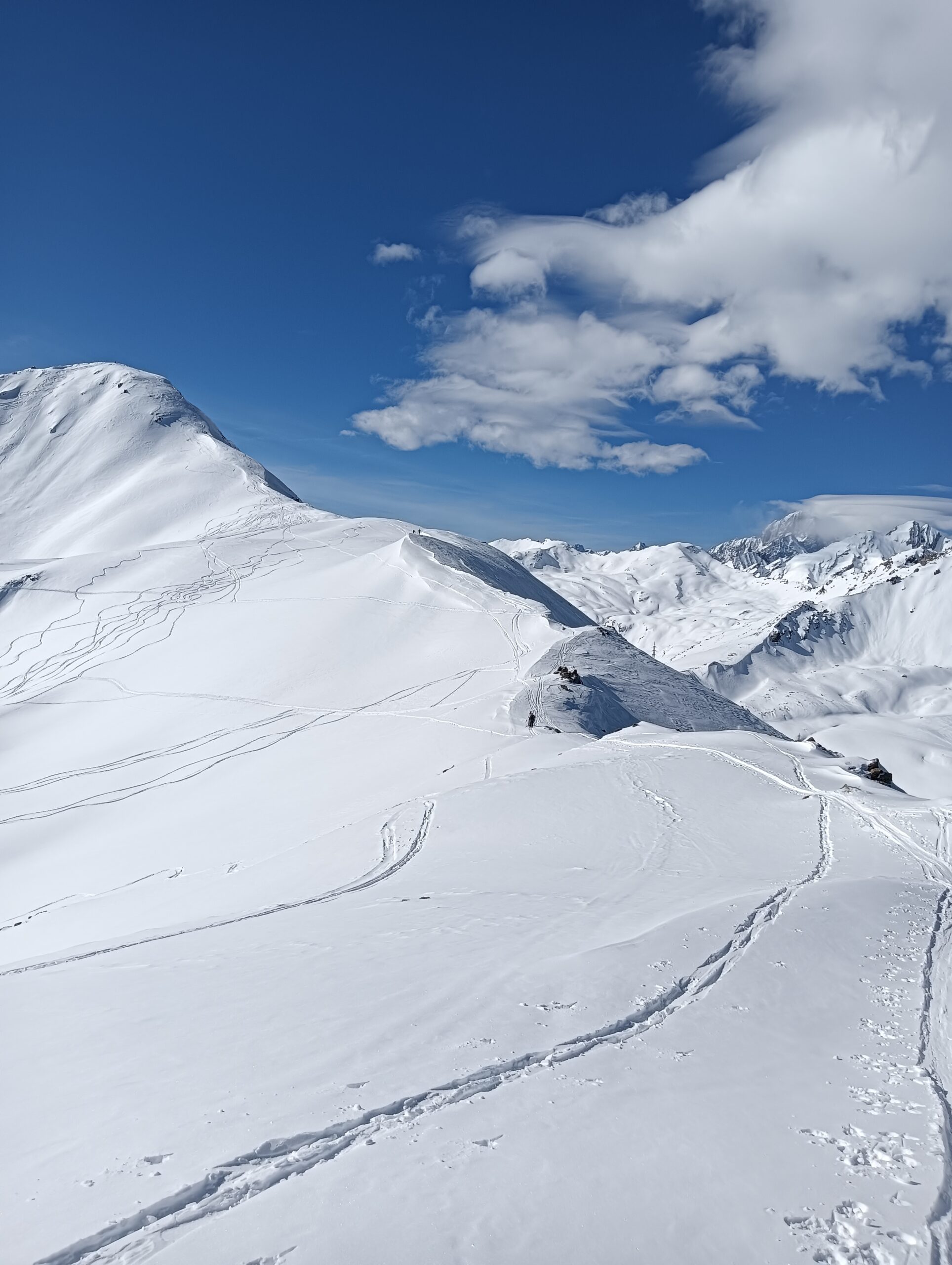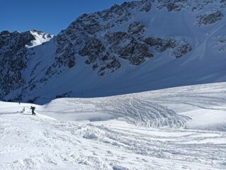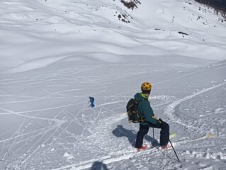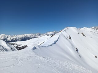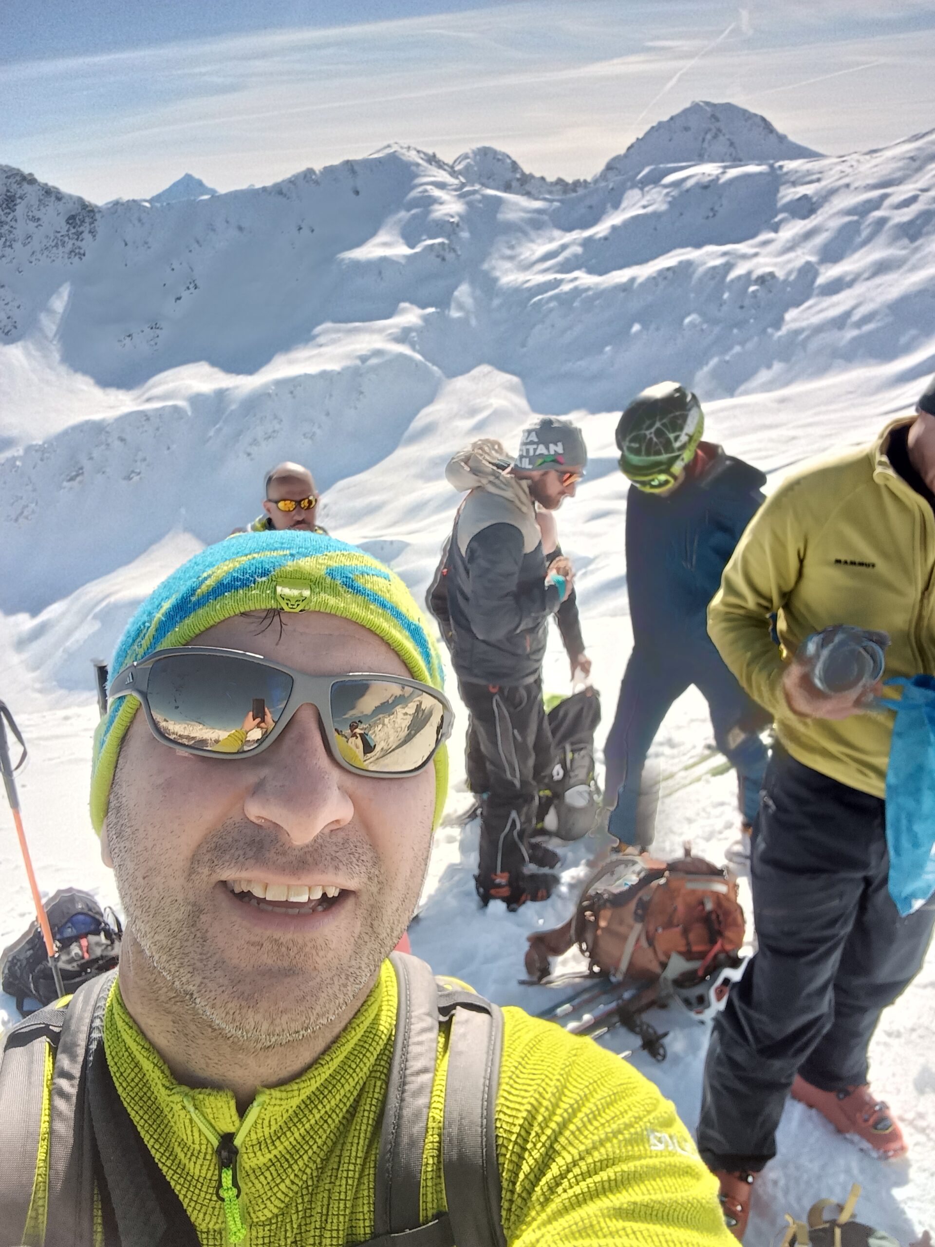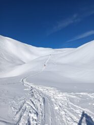 Dal colle alla vetta neve ghiacciata ,discesa dal canale fino al pianoro neve polverosa stupenda sciata la parte finale e primavera, zero vento…