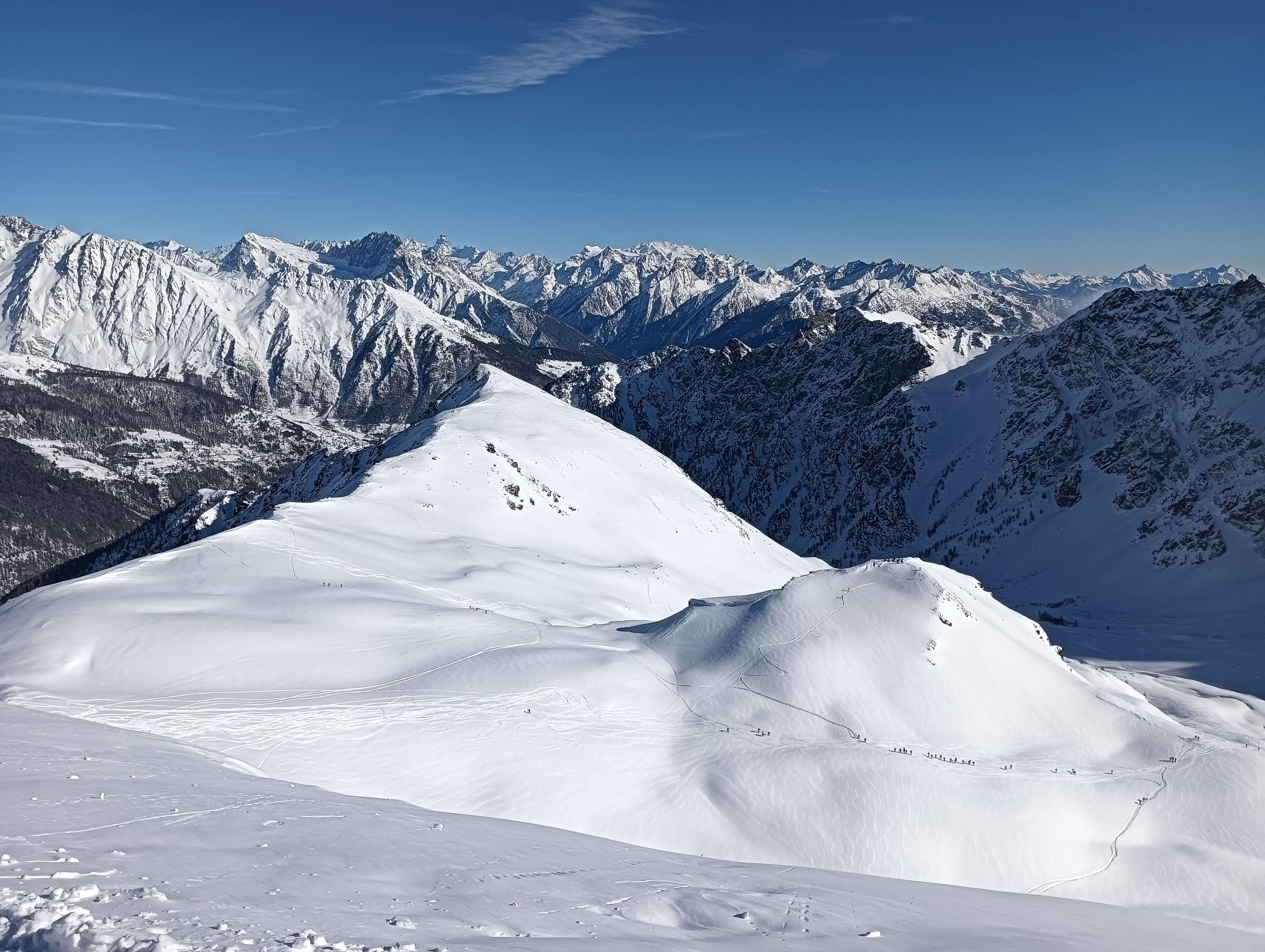 Saliti al bivacco tramite pista skialp,poi in vetta alla tete de Crevacol purtroppo il vento ha rovinato la giornata