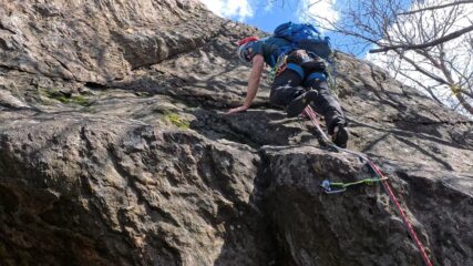fatto i primi due tiri ci siamo spostati su una variante del terzo tiro placca appoggiata che poi si sposta sullo spigolo…