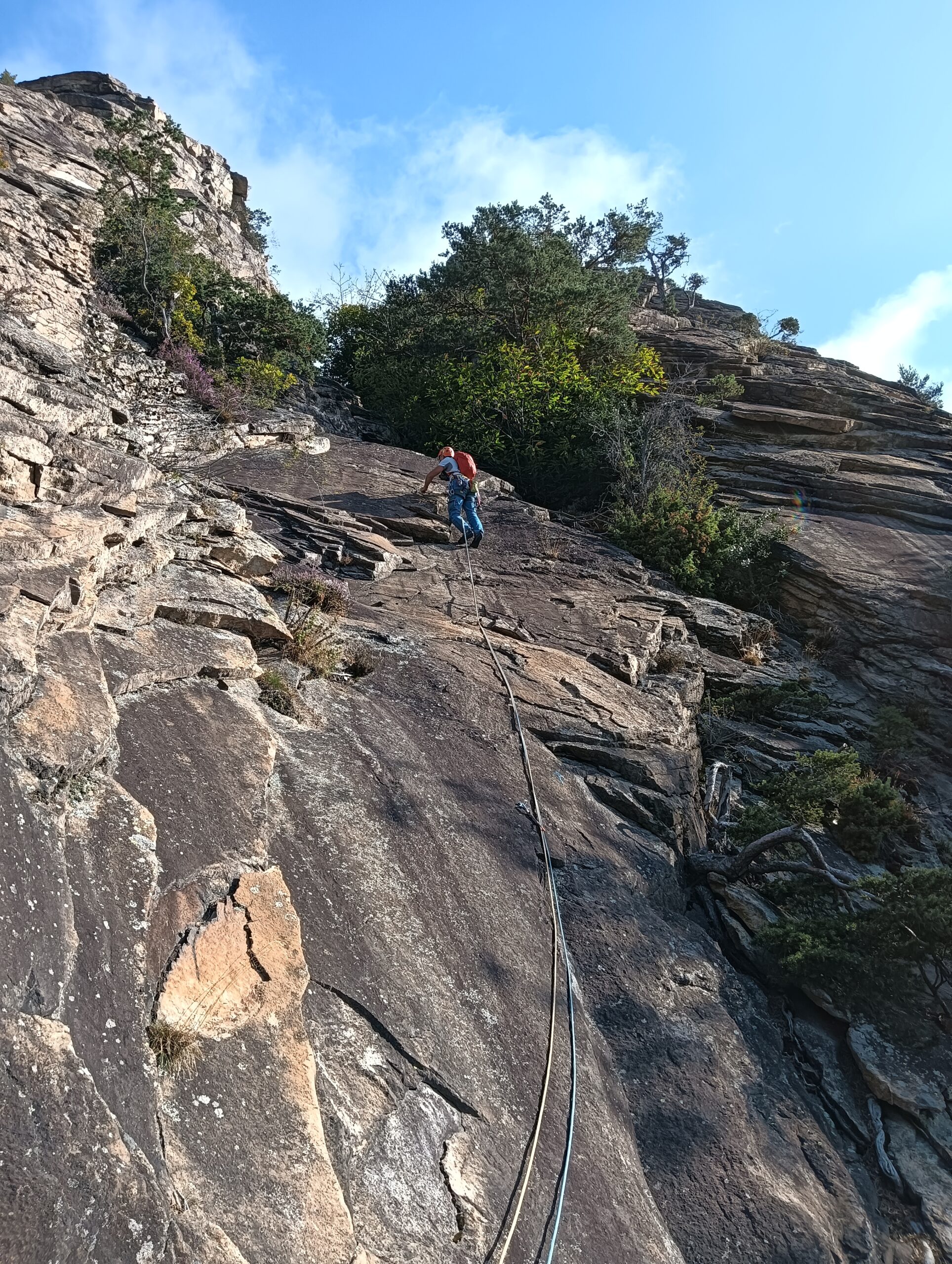 Bella via fatta dopo Aurelio,partenza muretto 5c azzerabile volendo poi placca e spigolo roccia stupenda , L2 diedro canale verticale poi a sinistra,L3 muro…