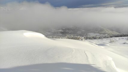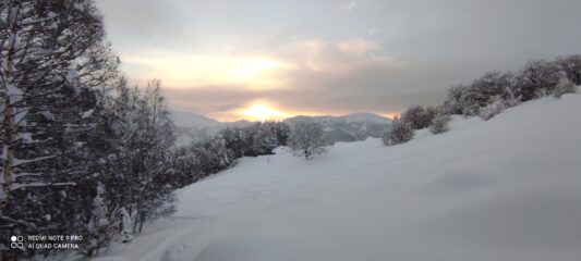 Bhe, si scende ancora sci ai piedi fino all'auto che non è poco, per la descrizione della neve basta avere molta immaginazione e sperare in…