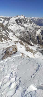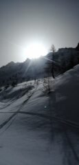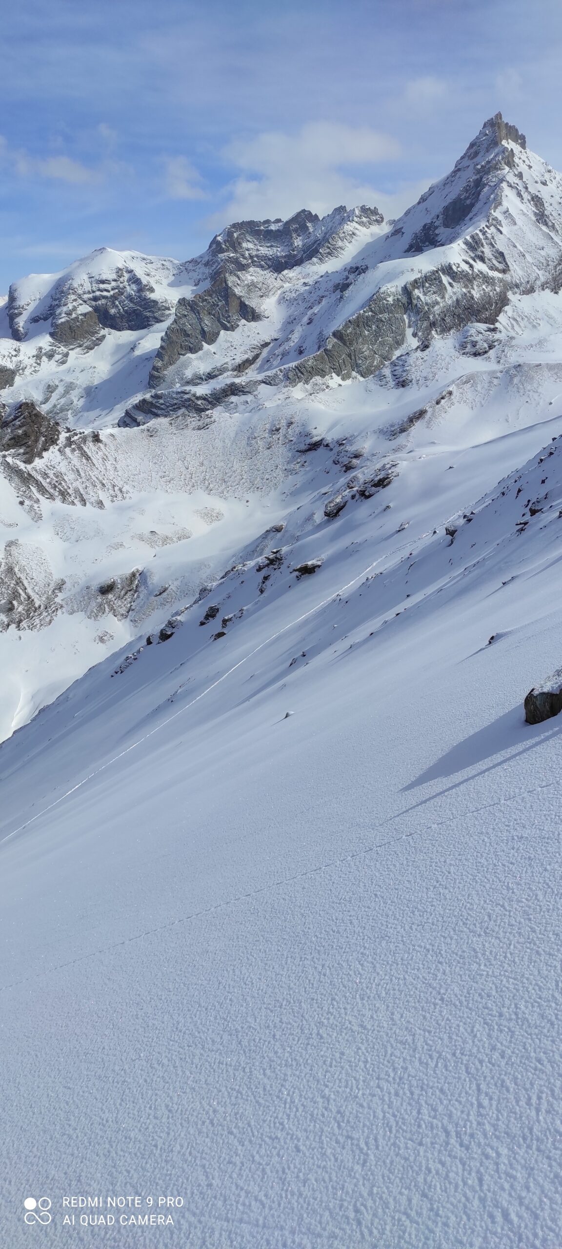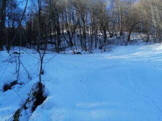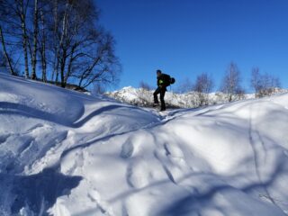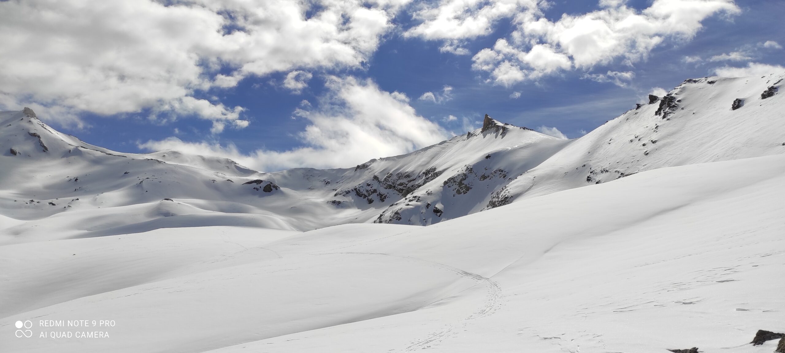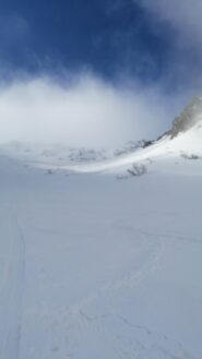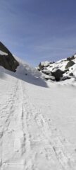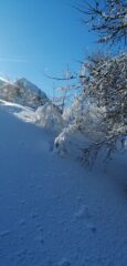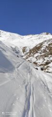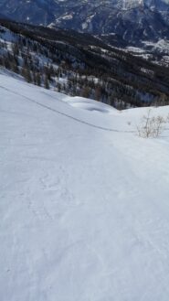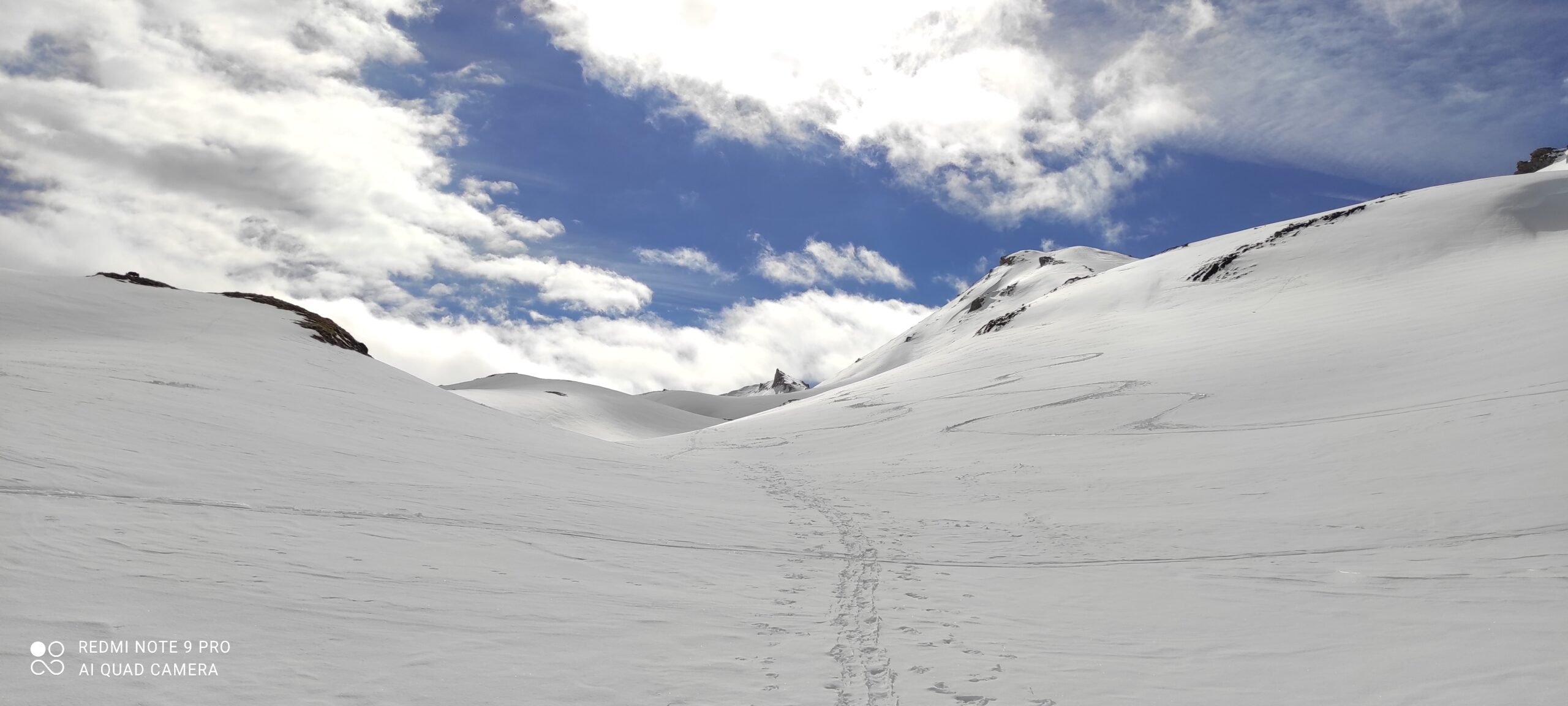 Ieri abbiamo aperto la traccia fino a sotto il traverso. Qualcuno dopo di noi ha proseguito fino a sotto le rocce. Discesa fino al…