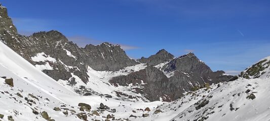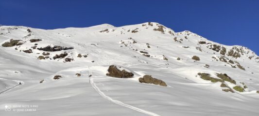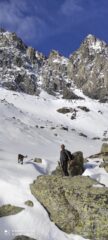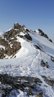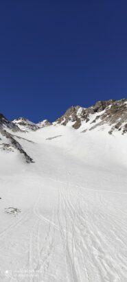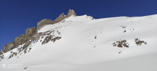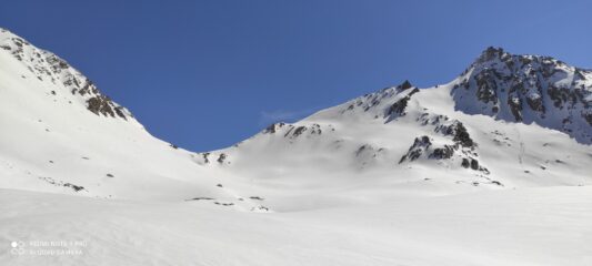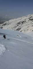 Alla ricerca di qualche metro quadro di neve decente. Salita senza problemi fino al colle. La discesa sul lato delle Rocce Platasse su neve inaspettatamente…