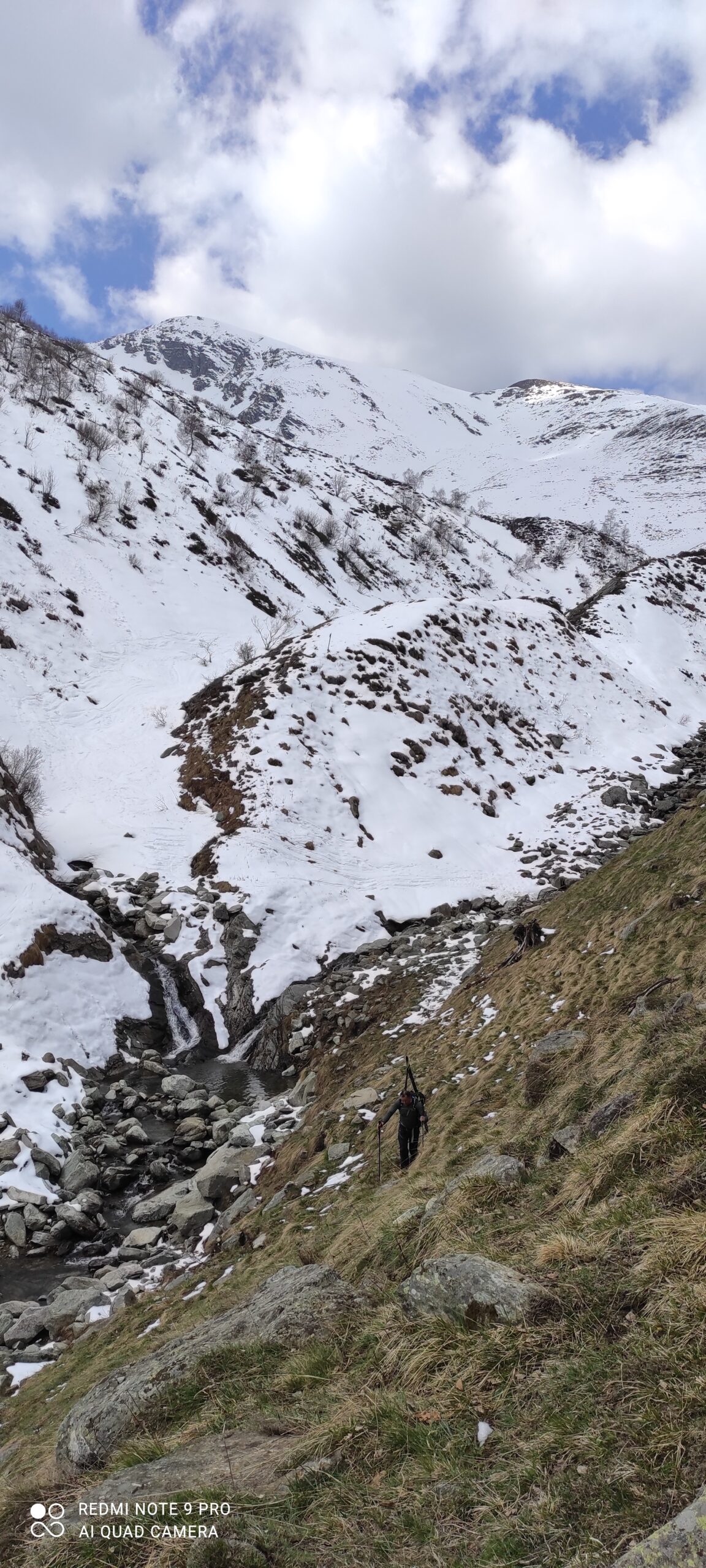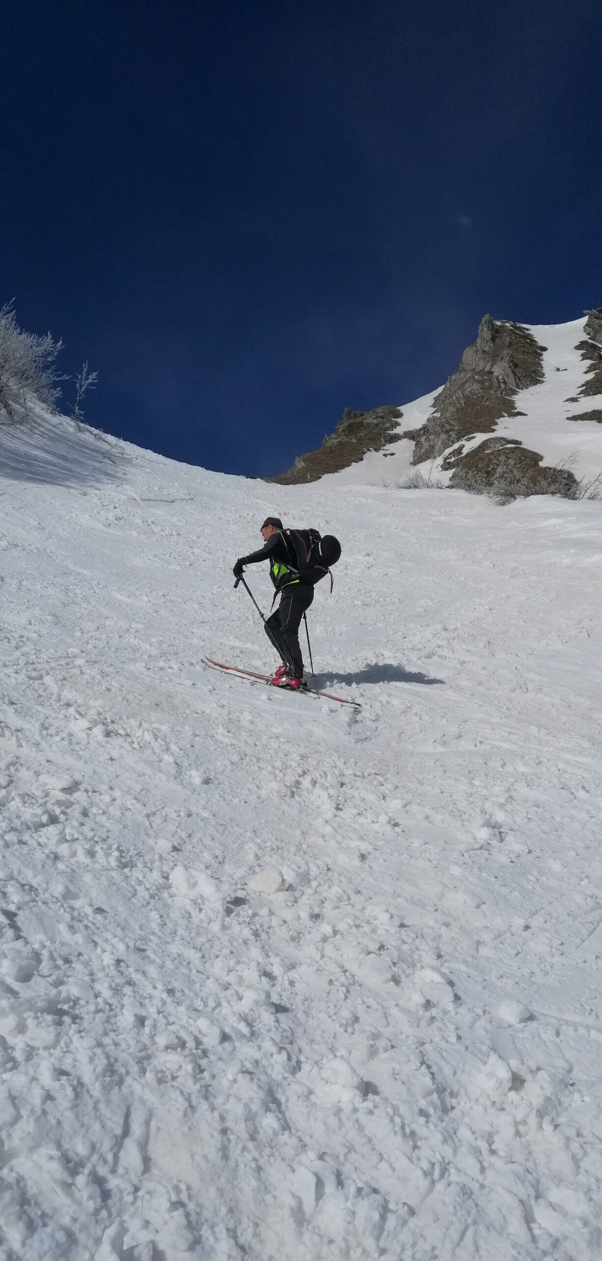 Sci ai piedi dall'auto , saliti dentro la gorgia . Salendo si trova 20 cm di poudreuse molto bella da sciare. La salita al colletto…