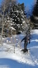 Sci a spalle causa neve ghiacciata fino alla croce del carabiniere, poi si sale su neve continua, eccetto un breve tratto prima del lago delle…