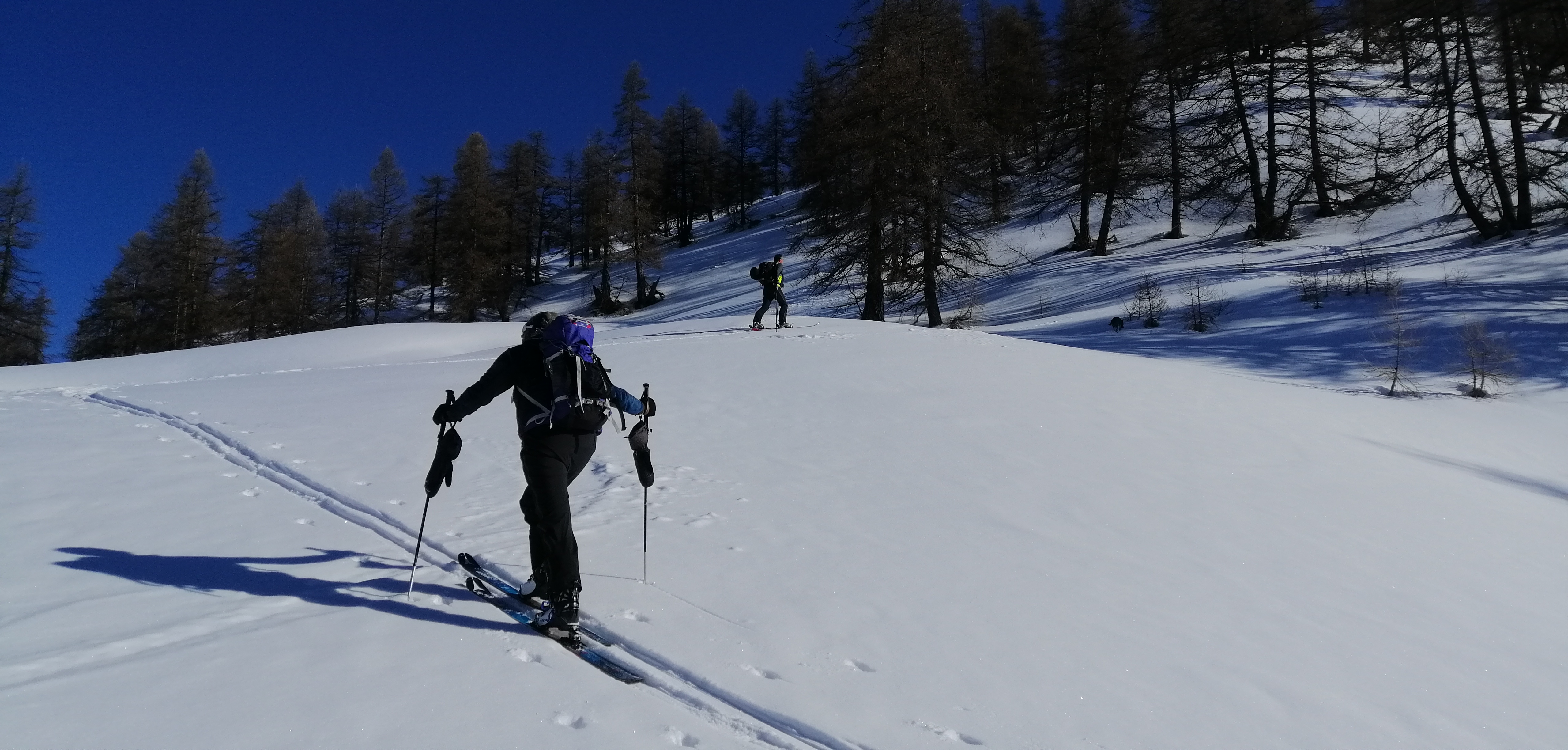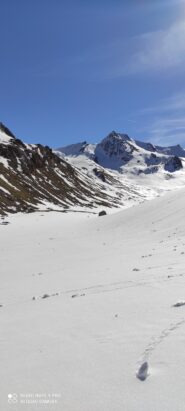 Si portano gli sci per 40 minuti poi neve continua fino al colle del Viso. Noi abbiamo interrotto la salita 50 metri sopra il colle…