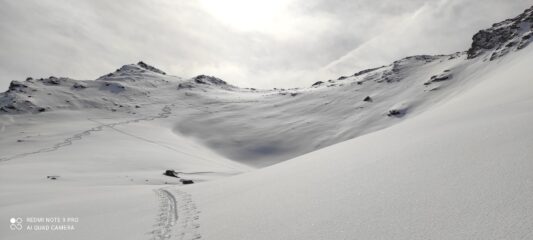 Portage di un'ora fin sopra Rif. Scarfiotti. Erano secoli che non salivo al colle, in pratica dalla chiusura degli impianti di sci estivo. Colle vestito…